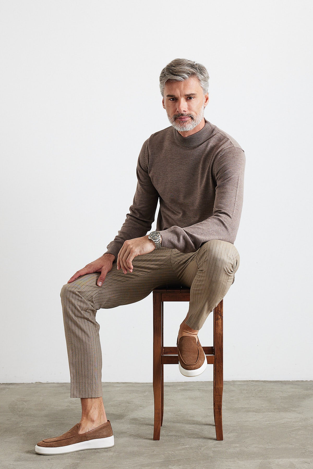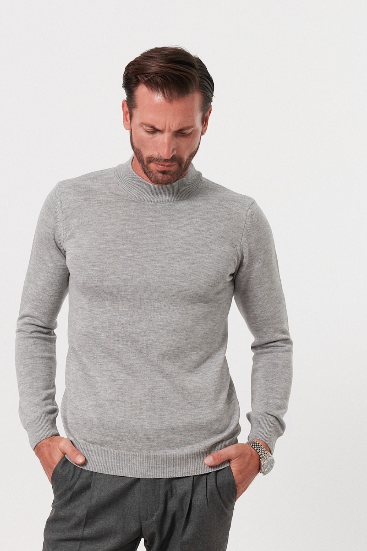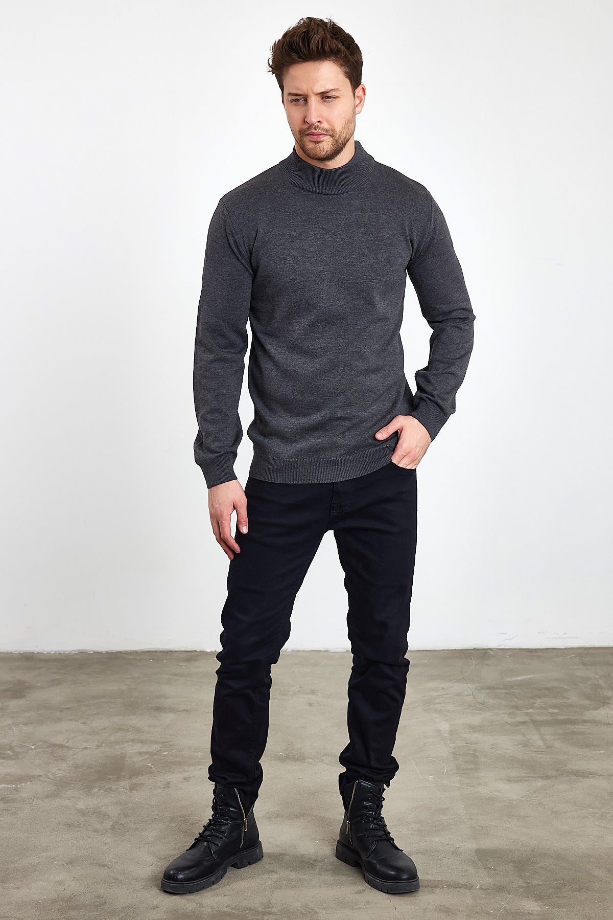 Erkek Slim Fit Dar Kesim Yarım Balıkçı Yaka Triko Kazak
