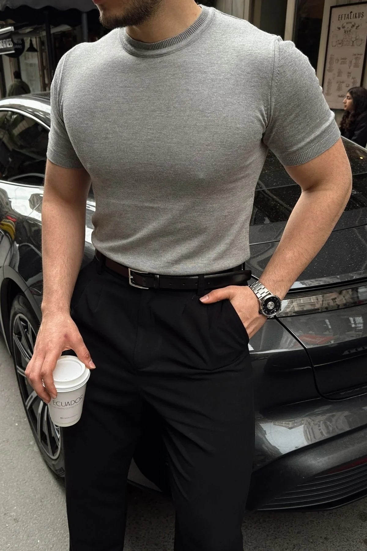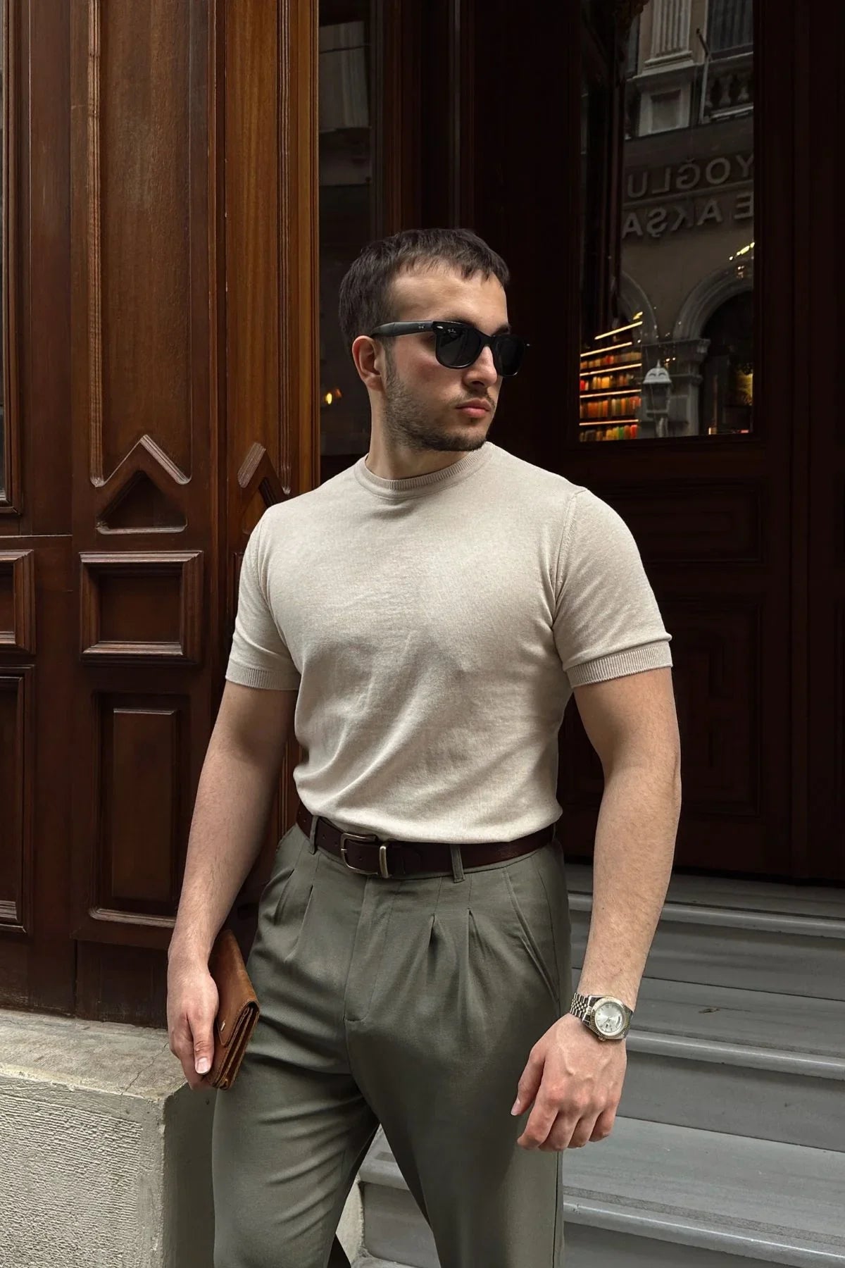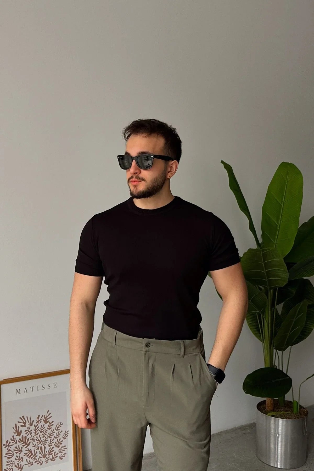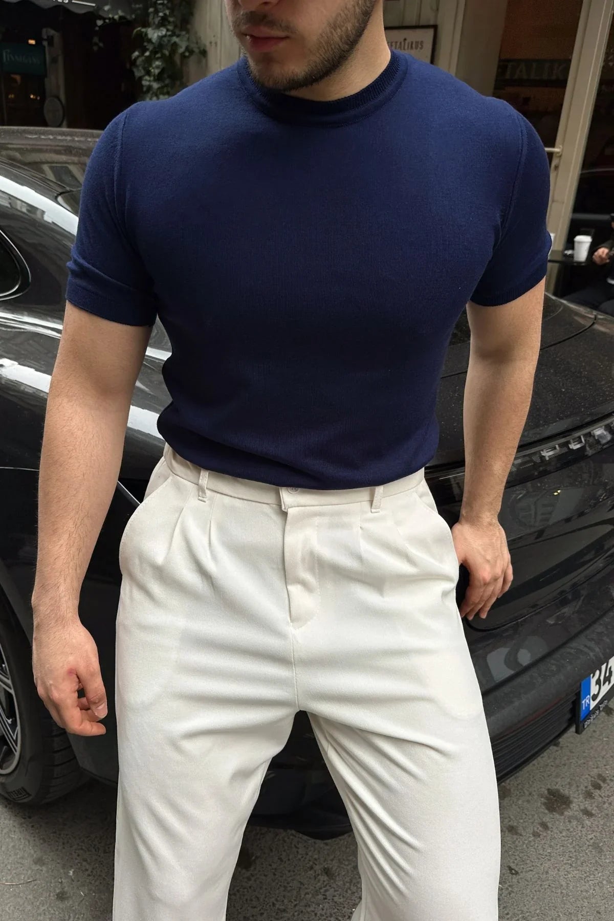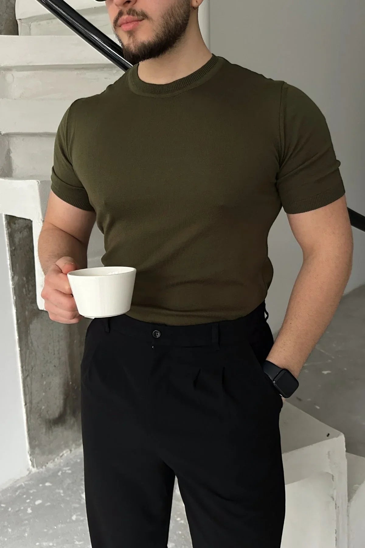 Kama Erkek Bisiklet Yaka Pamuk Regular Fit Kısa Kollu İnce Triko Tişört