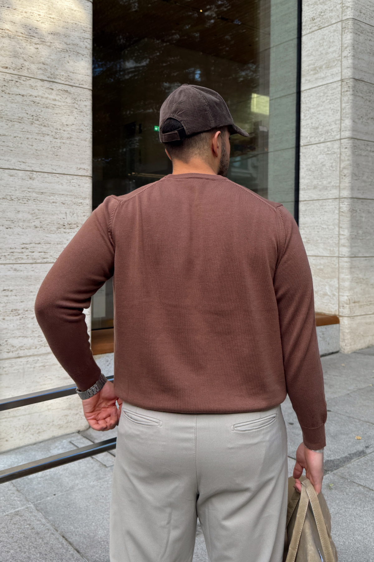 Acton Erkek %100 Organik Pamuk Bisiklet Yaka Triko Kazak