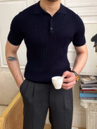 Erkek Polo Yaka Pamuk Saç Örgülü Slim Fit Kısa Kollu İnce Triko Tişört