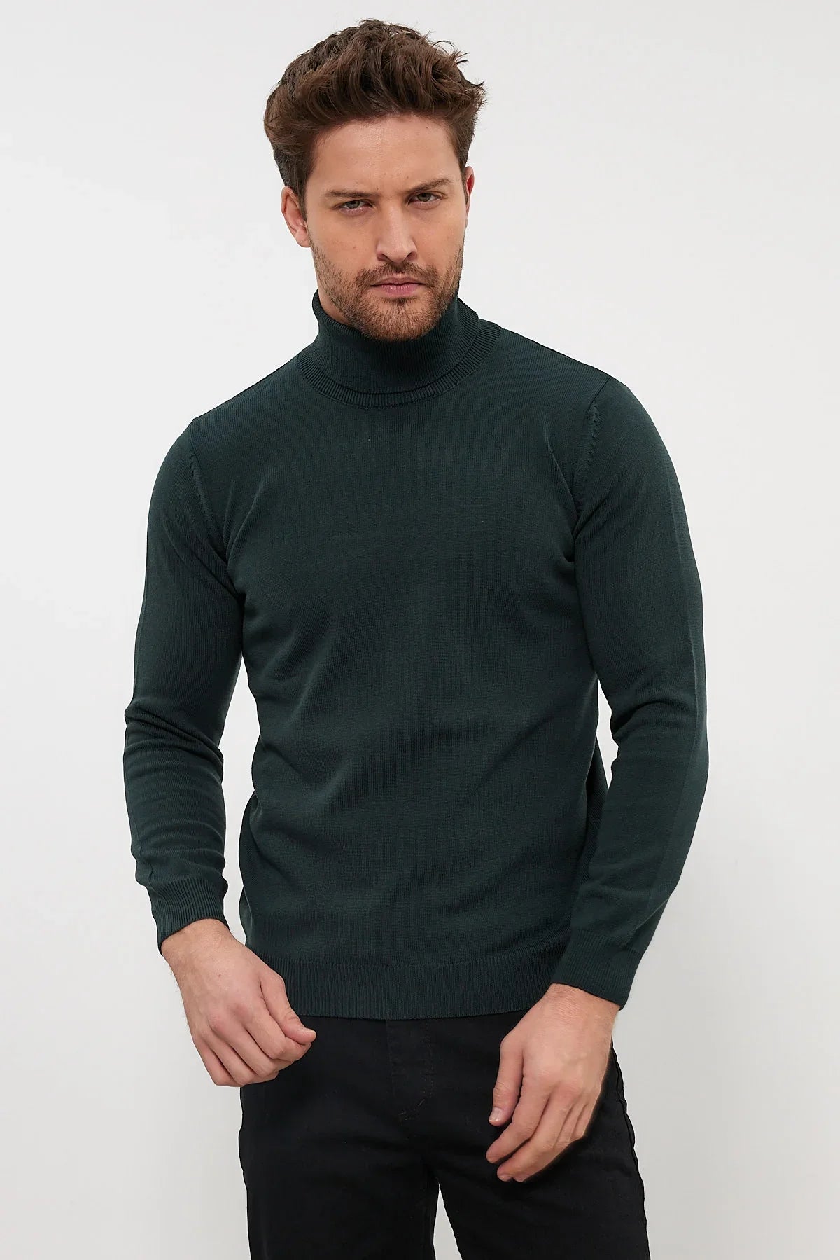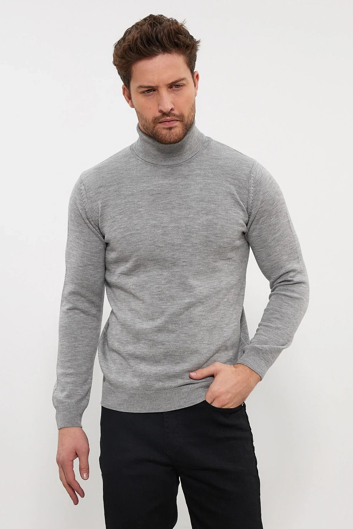 Erkek Slim Fit Dar Kesim Balıkçı Yaka Triko Kazak