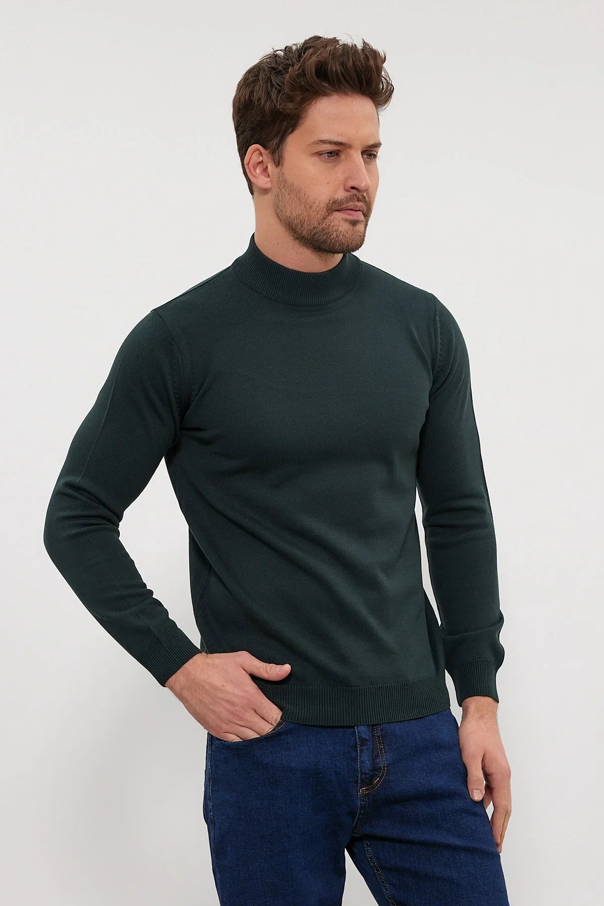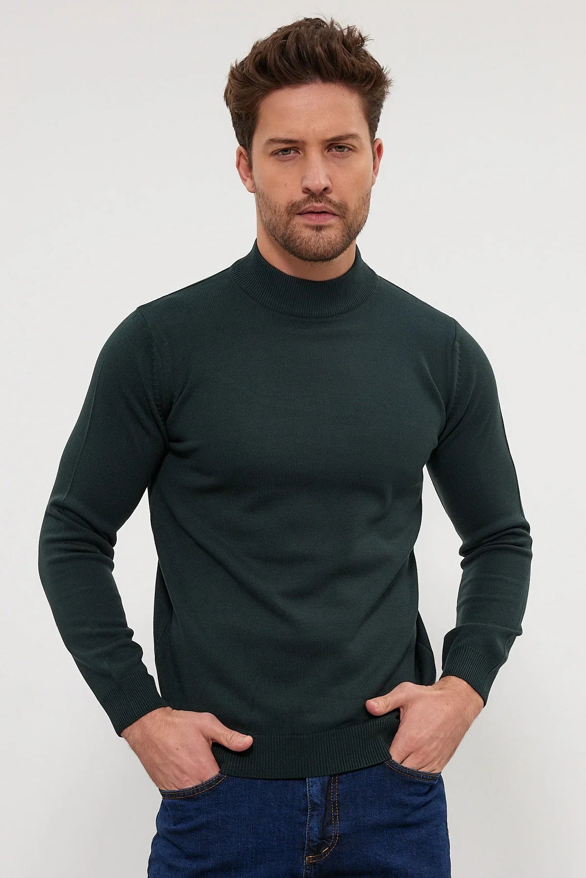 Erkek Slim Fit Dar Kesim Yarım Balıkçı Yaka Triko Kazak