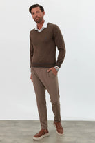 Erkek Standart Fit Nakışlı Normal Kesim V Yaka Triko Kazak