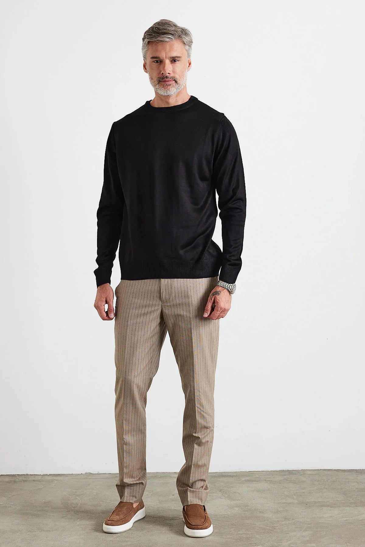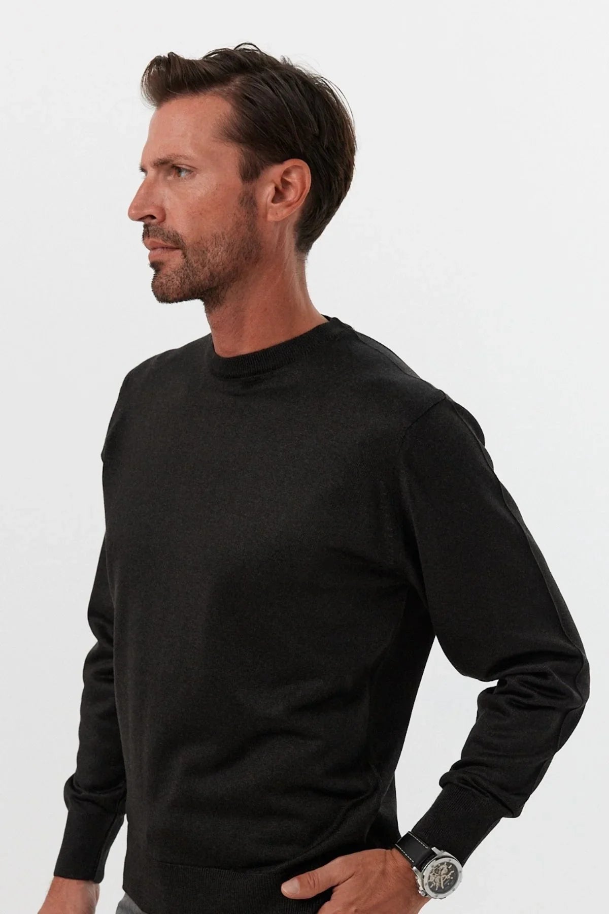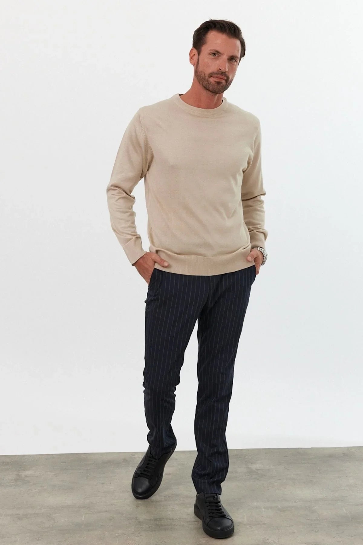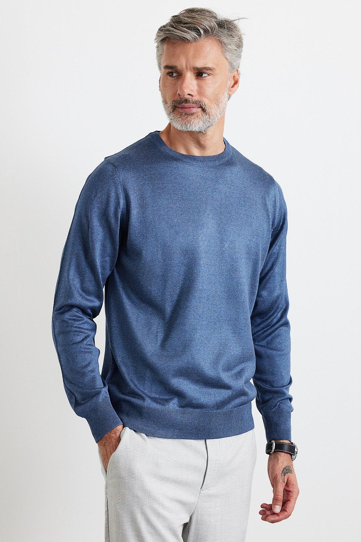 Erkek Standart Fit Normal Kesim Bisiklet Yaka Triko Kazak
