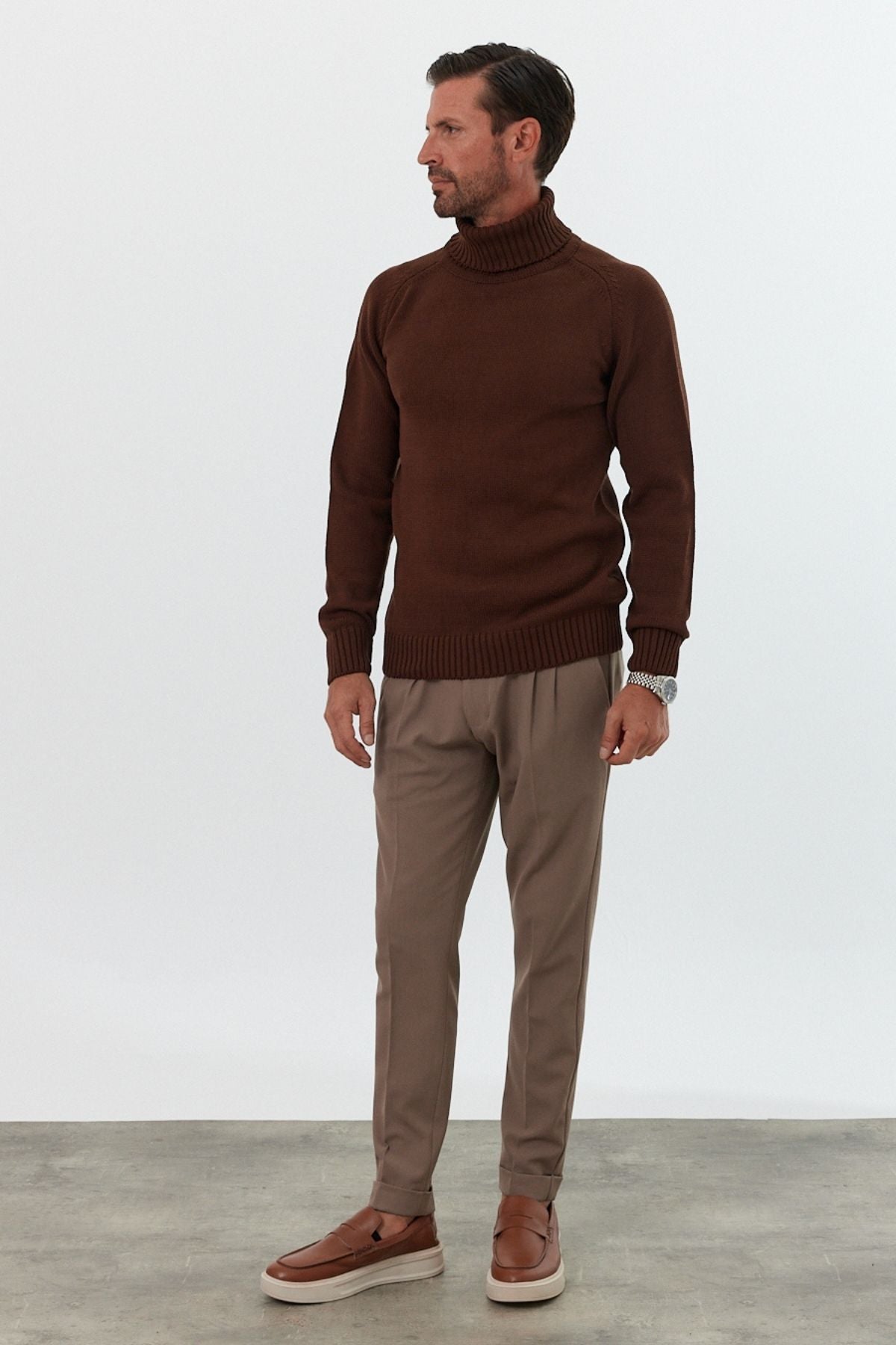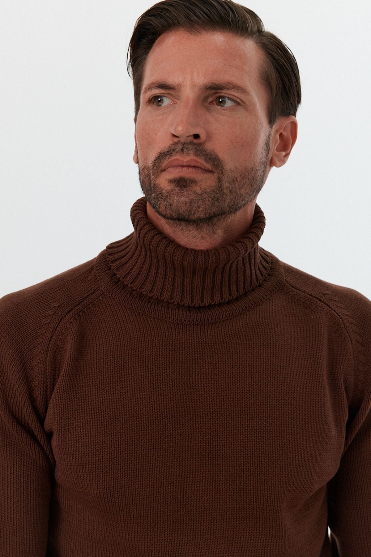 Erkek Tam Balıkçı Yaka Kalın İtalyan Kol Triko Kazak