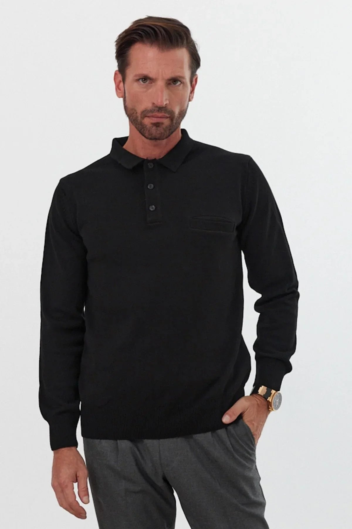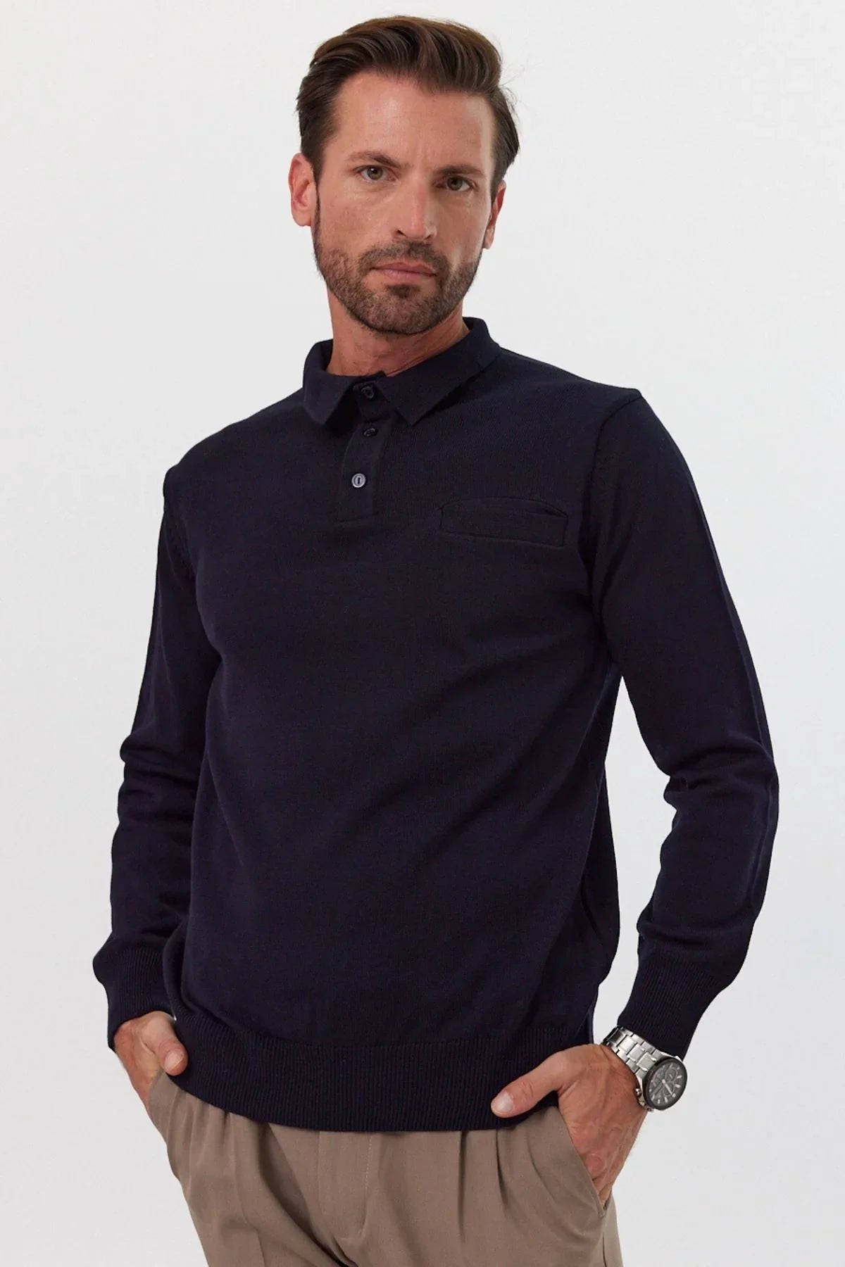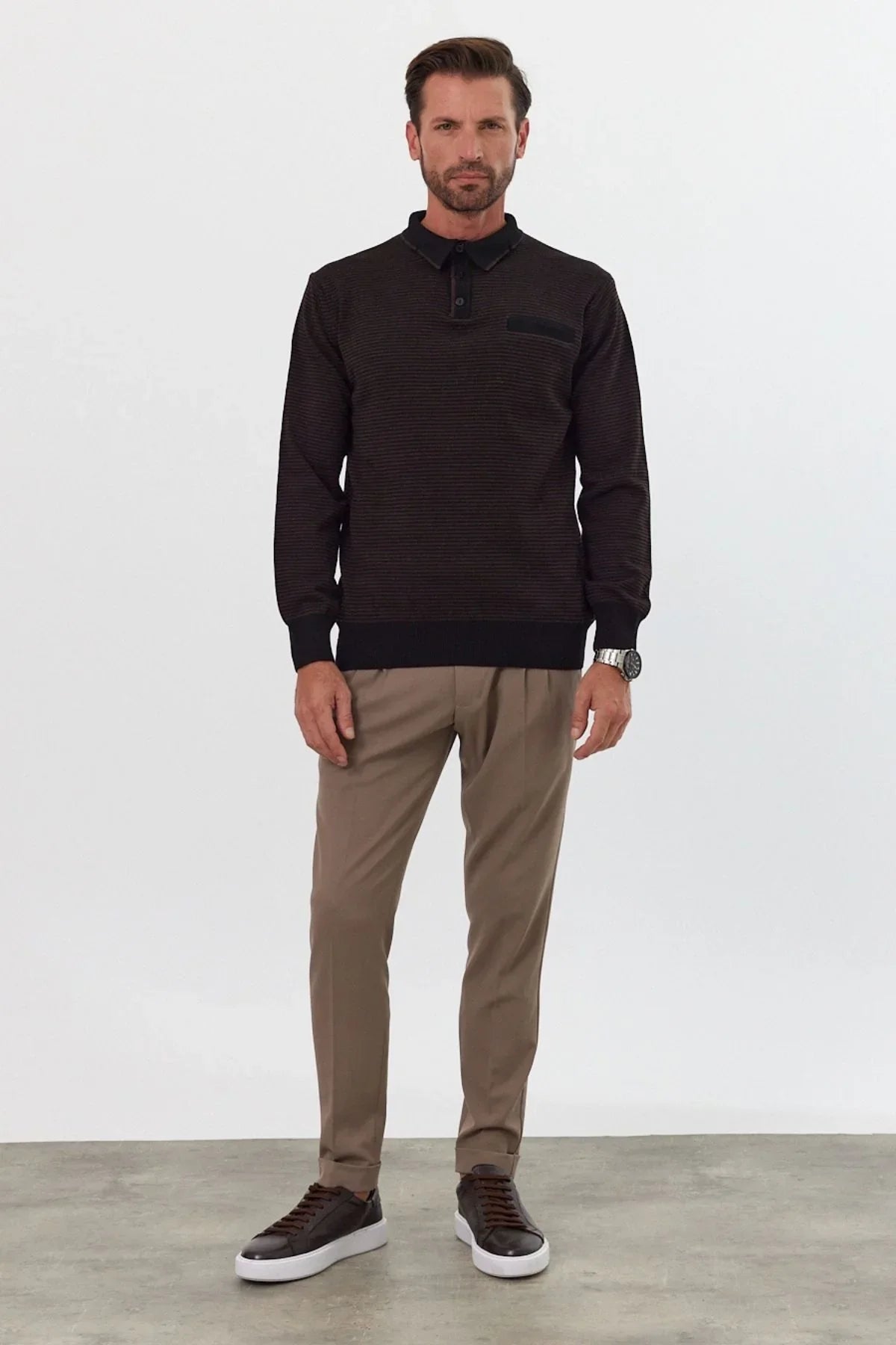 Erkek Standart Fit Polo Yaka Cepli Triko Kazak