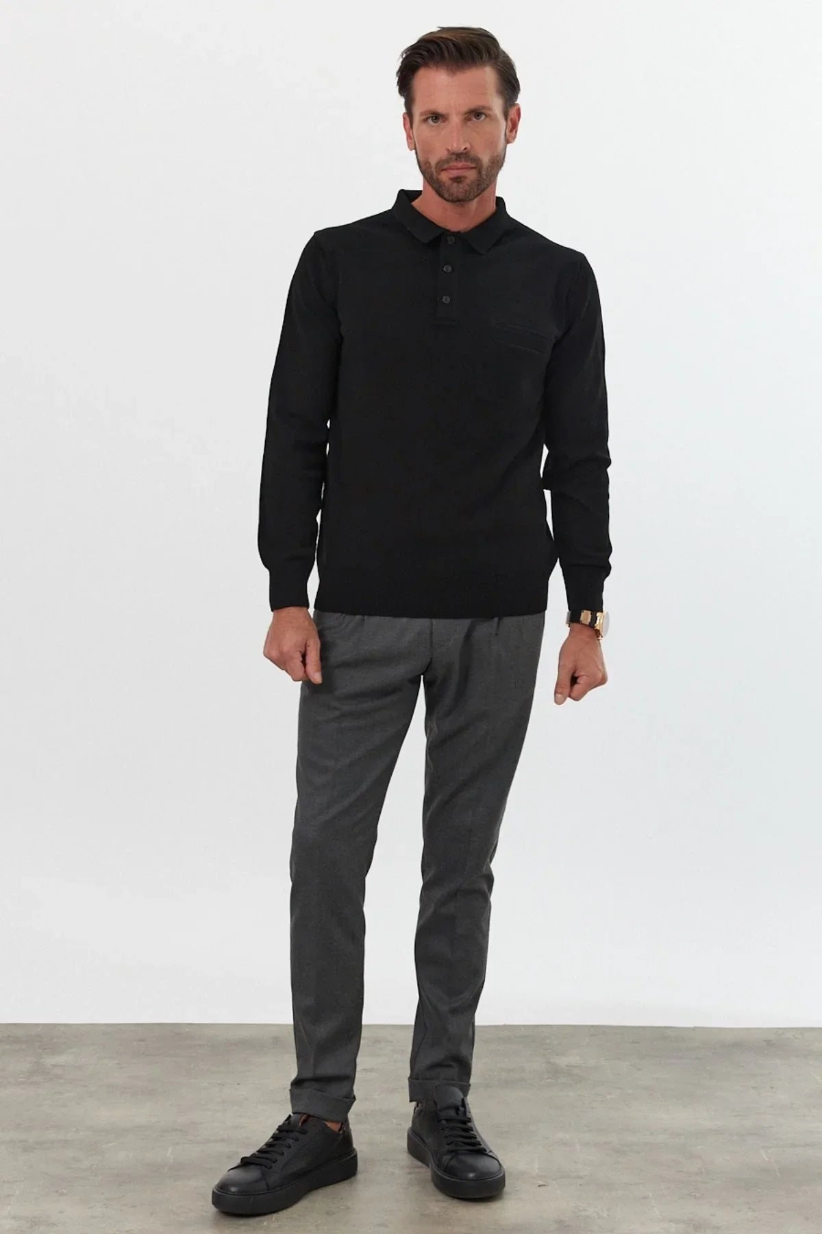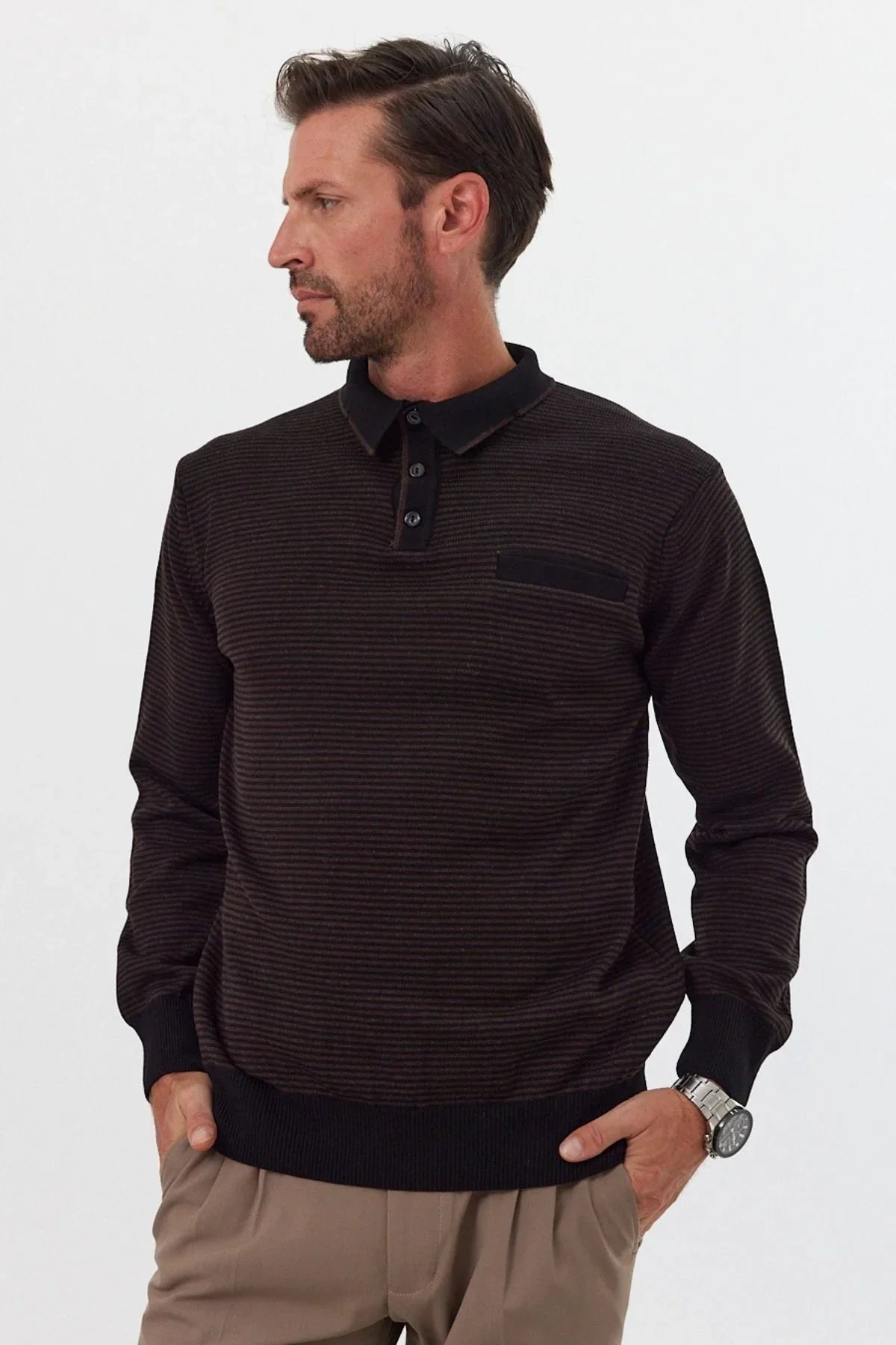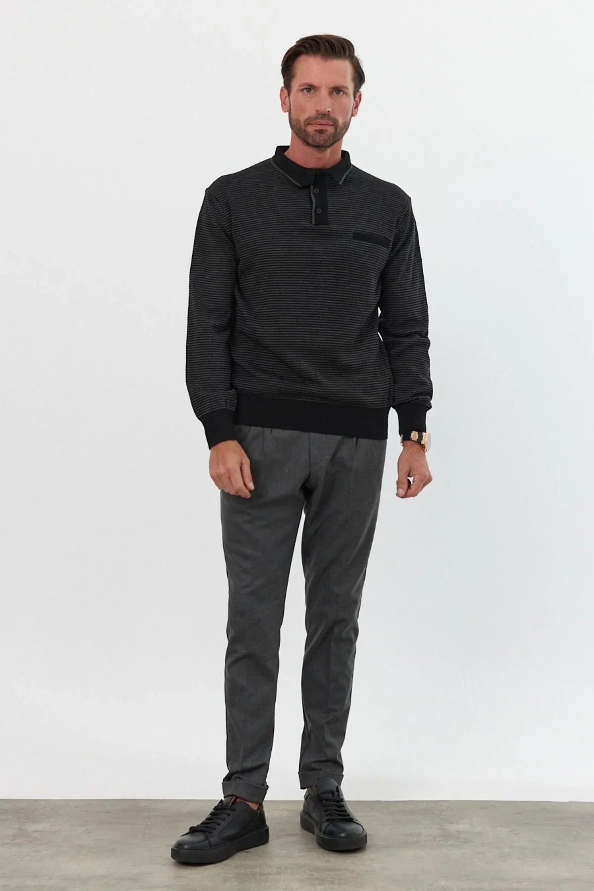 Erkek Standart Fit Polo Yaka Cepli Triko Kazak