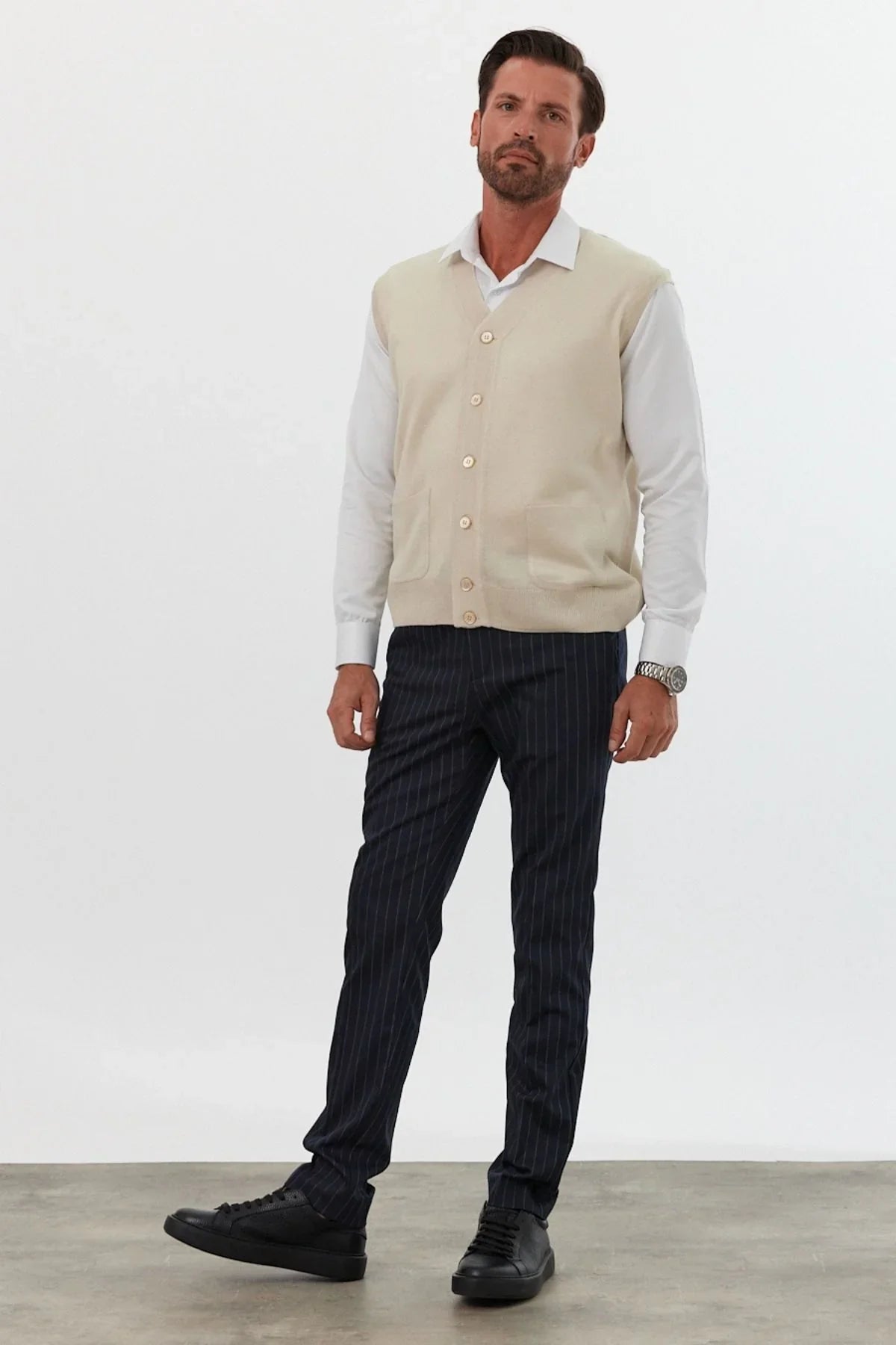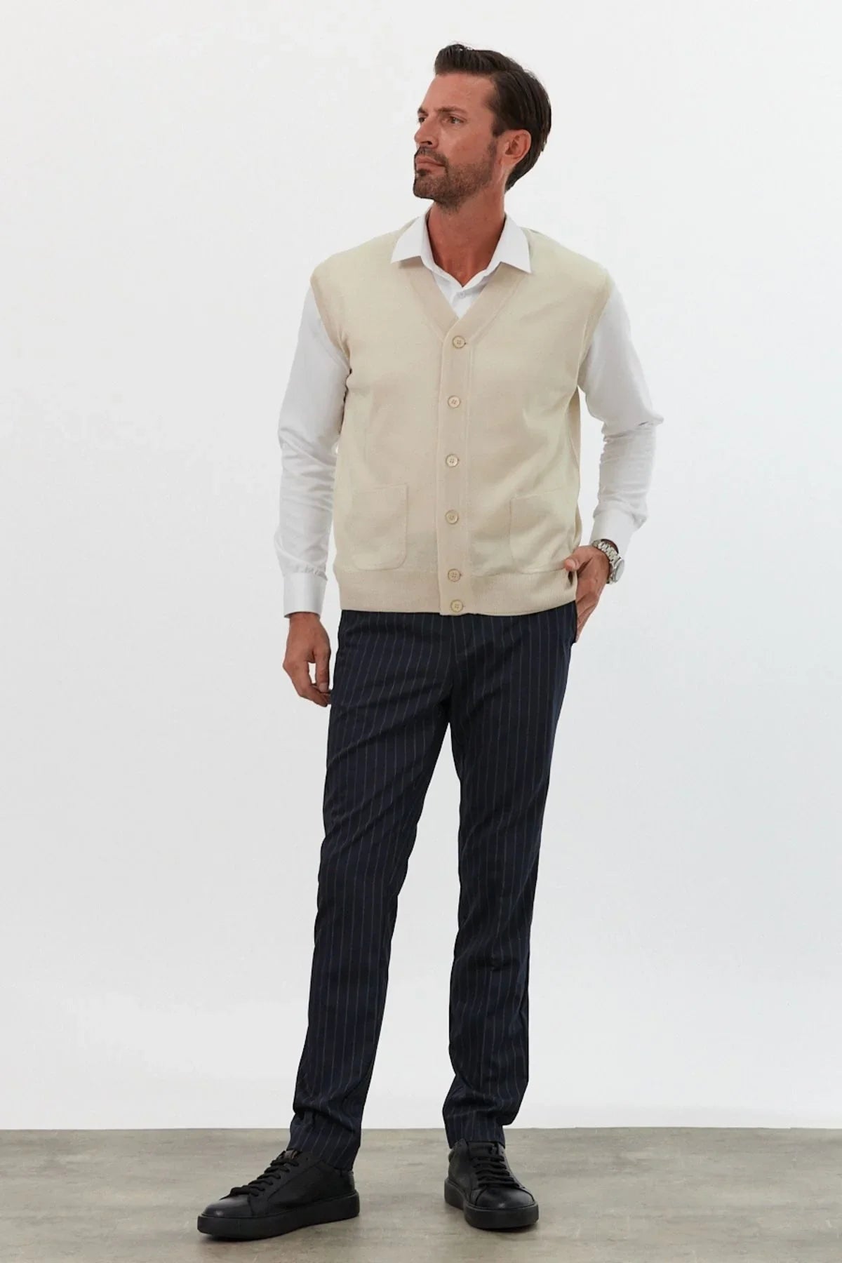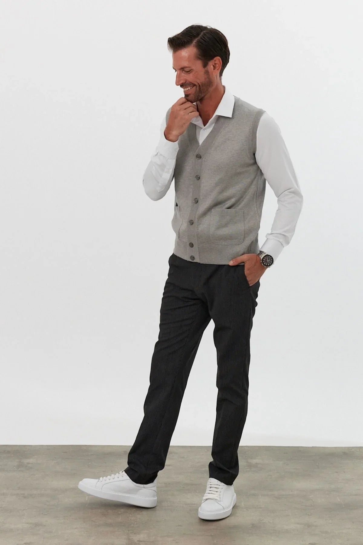 Livio Ferri yelekleri, kaliteli kumaşlarıyla hem dayanıklı hem de konforludur. Düğme detayları ve basit cepler, yeleğe işlevsellik katarken tasarımın genel sadeliğini korur. İnce ve hafif yapısı sayesinde gün boyu rahat bir kullanım sunar.