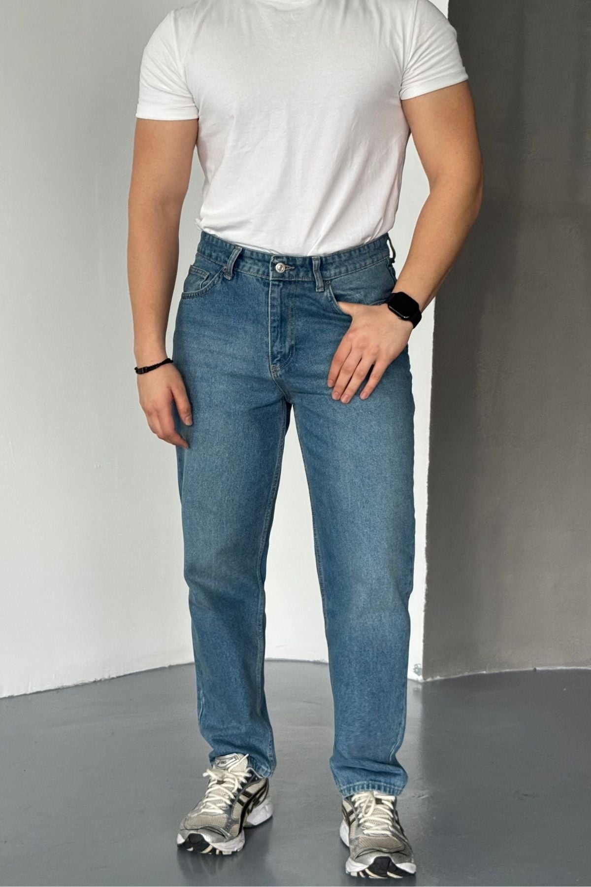 Erkek Basic Boyfriend Kalıp Yıkamalı Kot Pantolon Jean