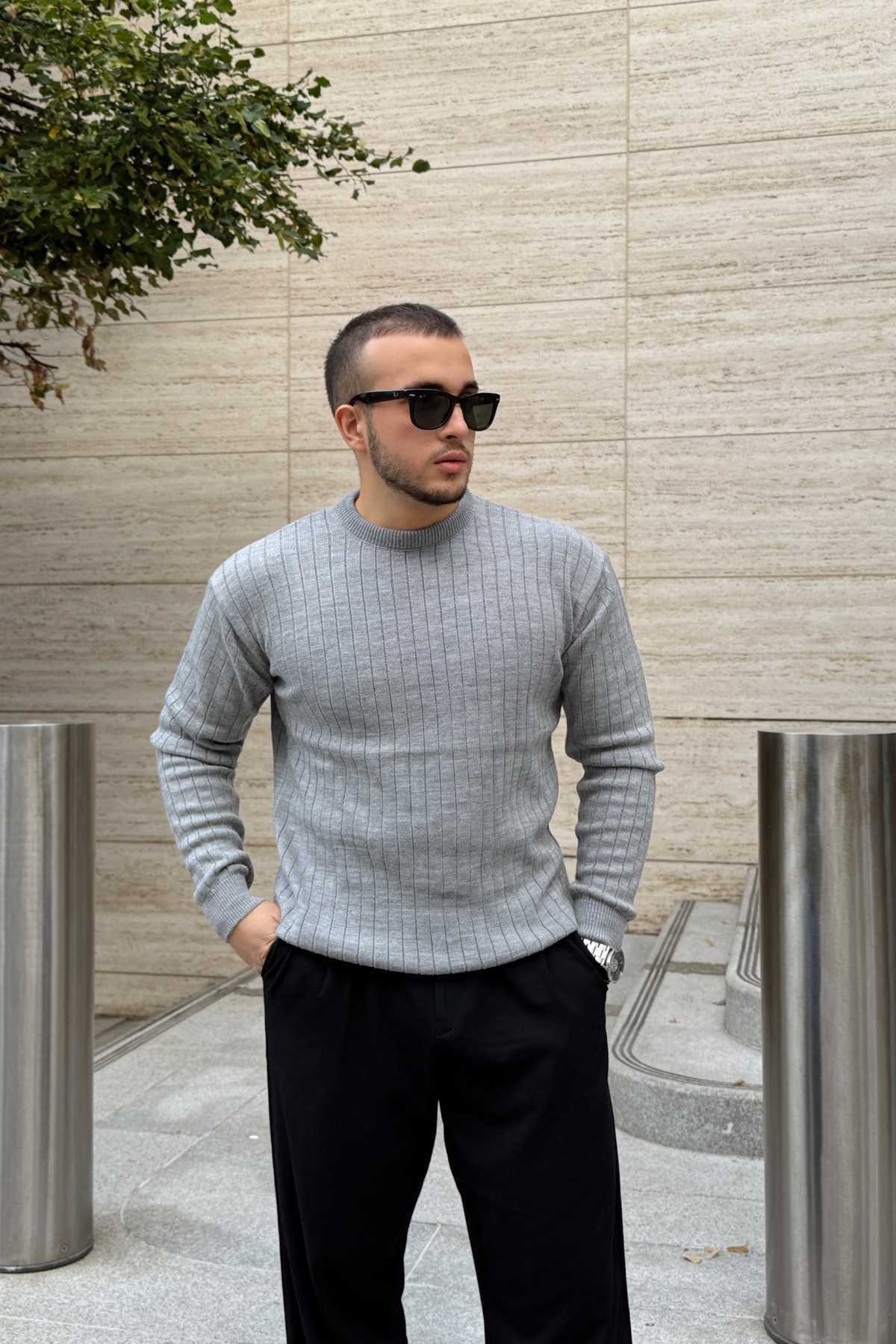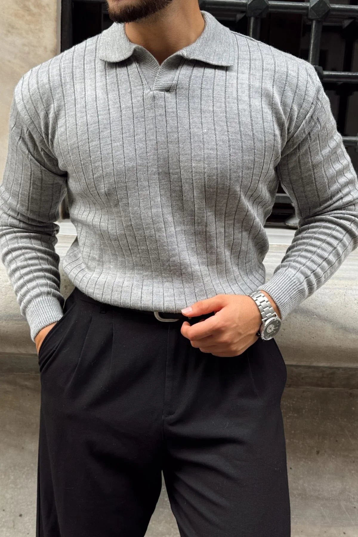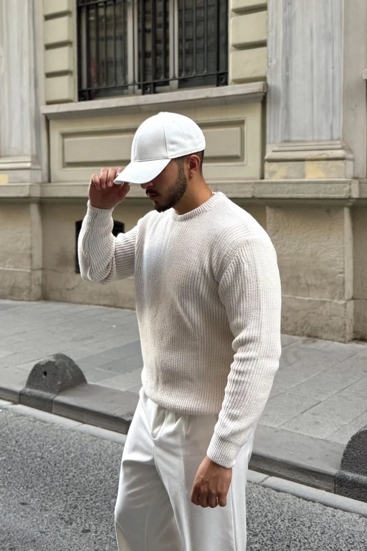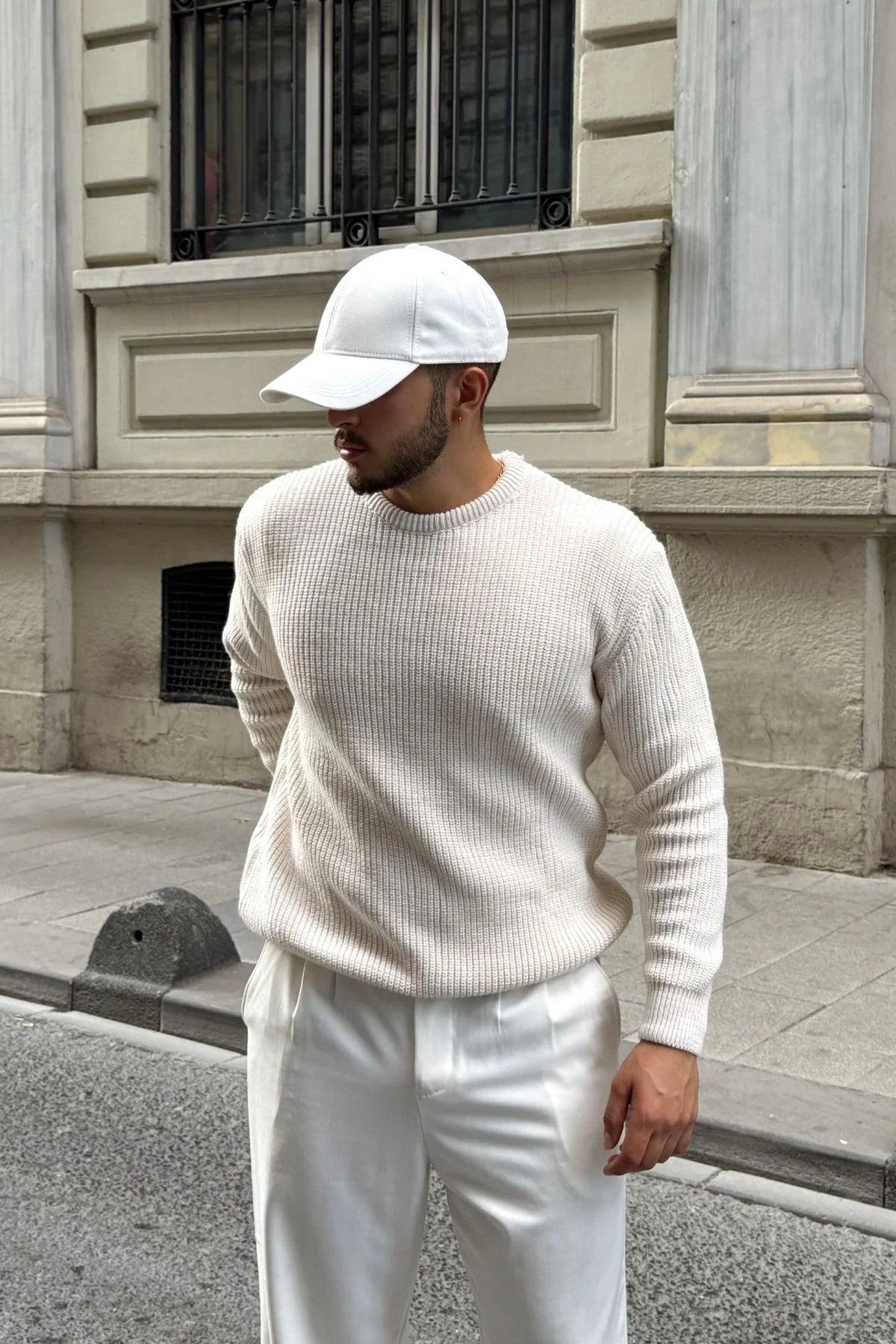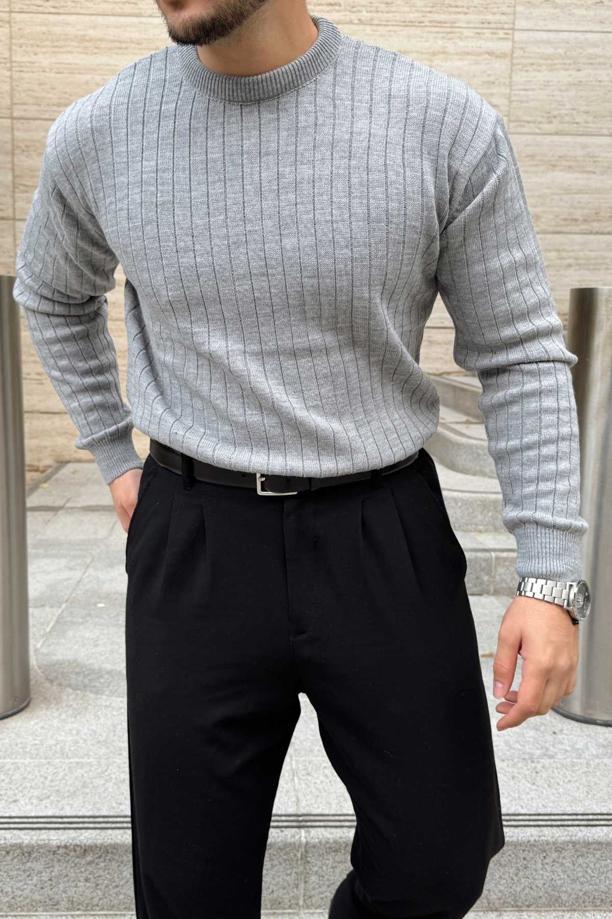 Triko kazaklar, kumaş baggy pantolon ve deri kemerle rahat ve modern bir görünüm yaratır. Kadife uzun kollu gömlek ceketler veya kadife yaka günlük ceketlerimizle farklı stiller oluşturulabilir.
