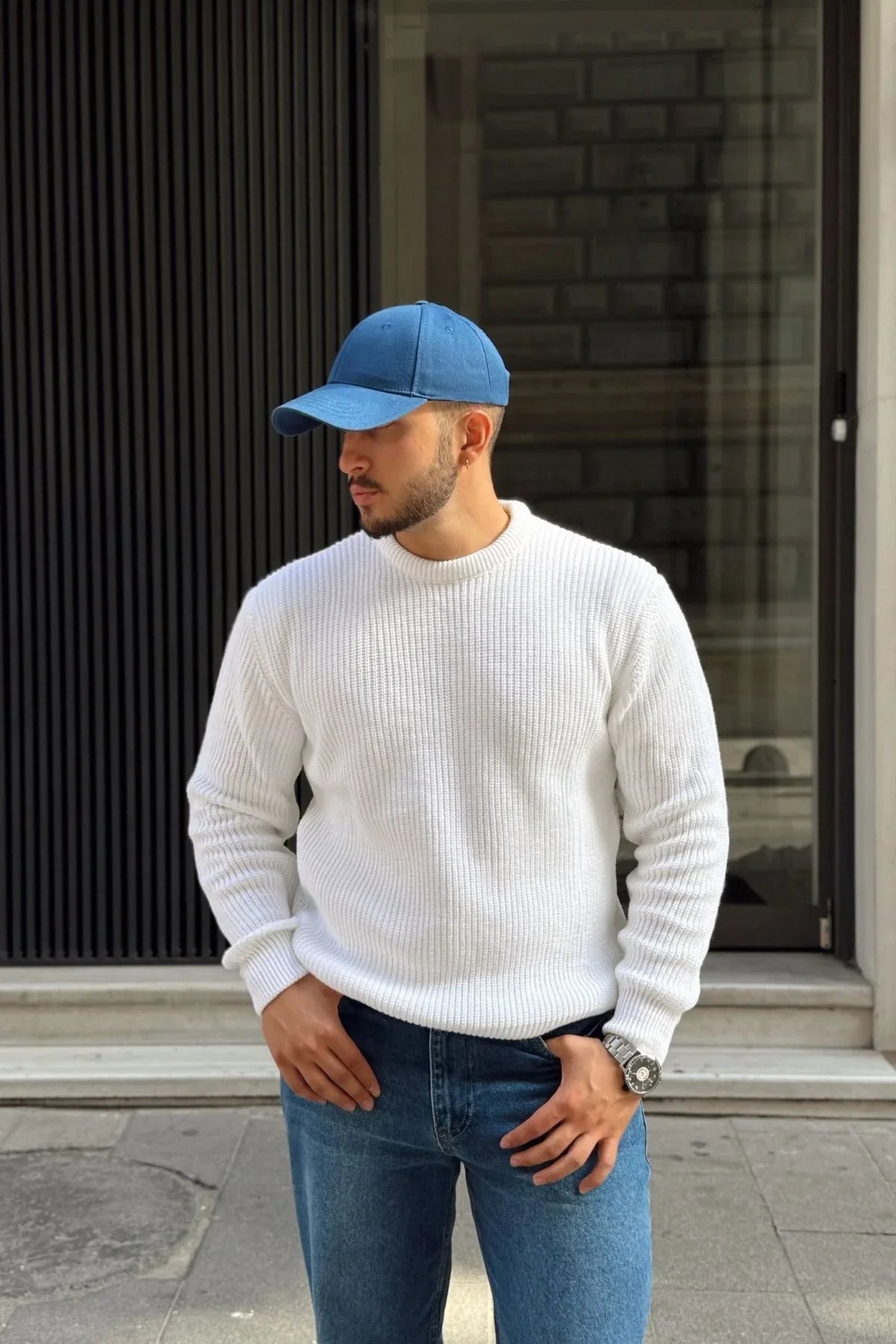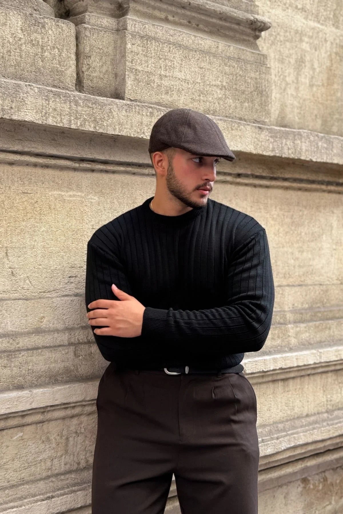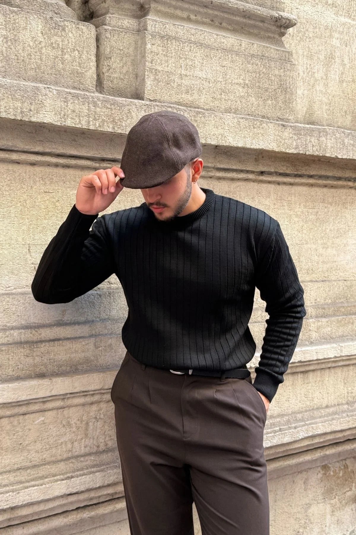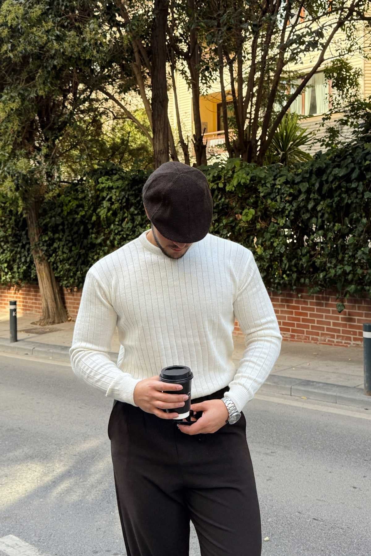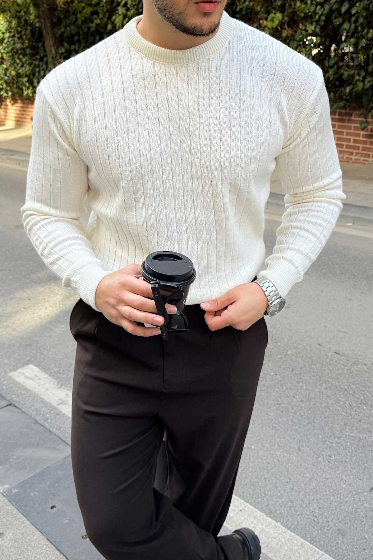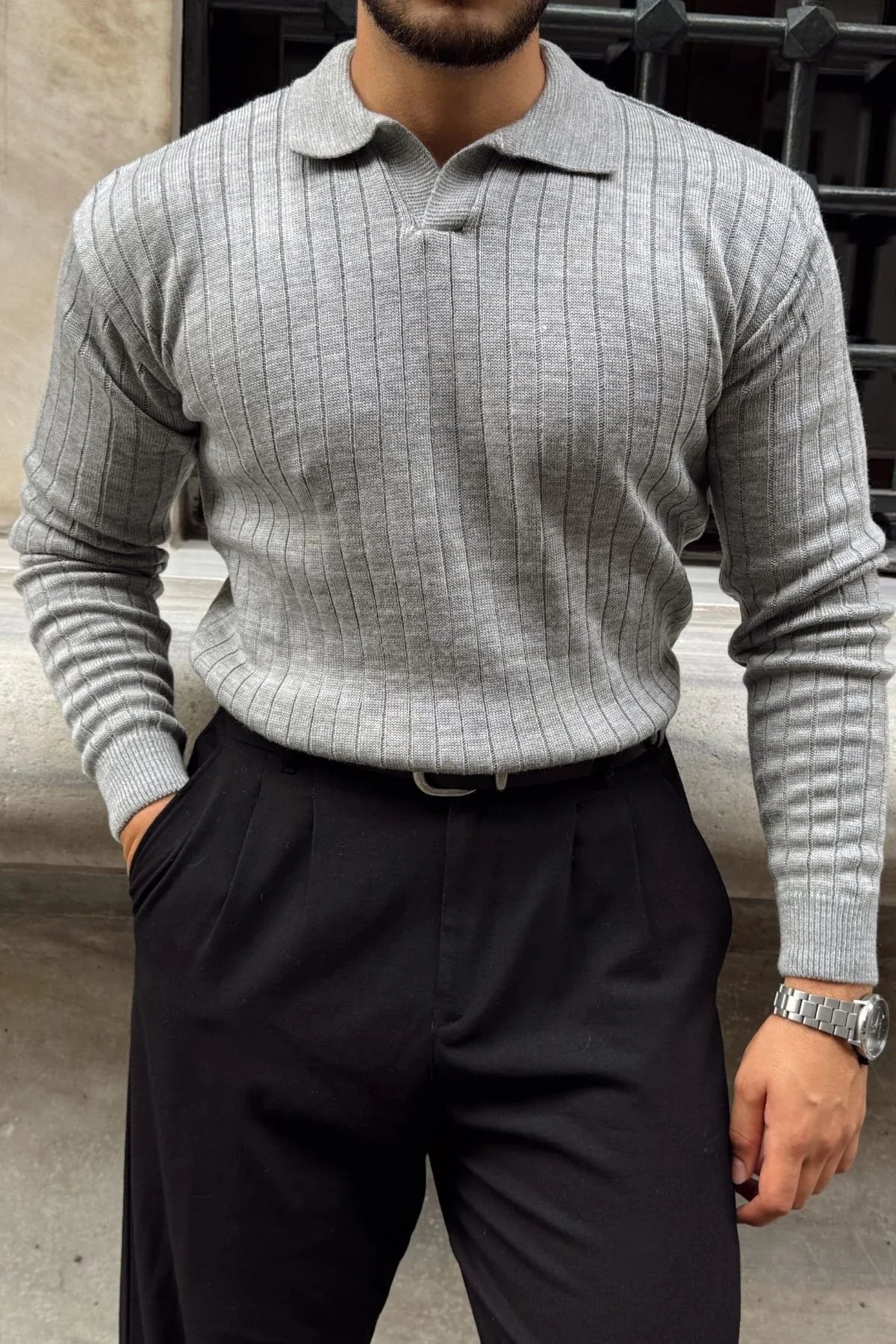Triko kazaklar, kumaş baggy pantolon ve deri kemerle rahat ve modern bir görünüm yaratır. Kadife uzun kollu gömlek ceketler veya kadife yaka günlük ceketlerimizle farklı stiller oluşturulabilir.