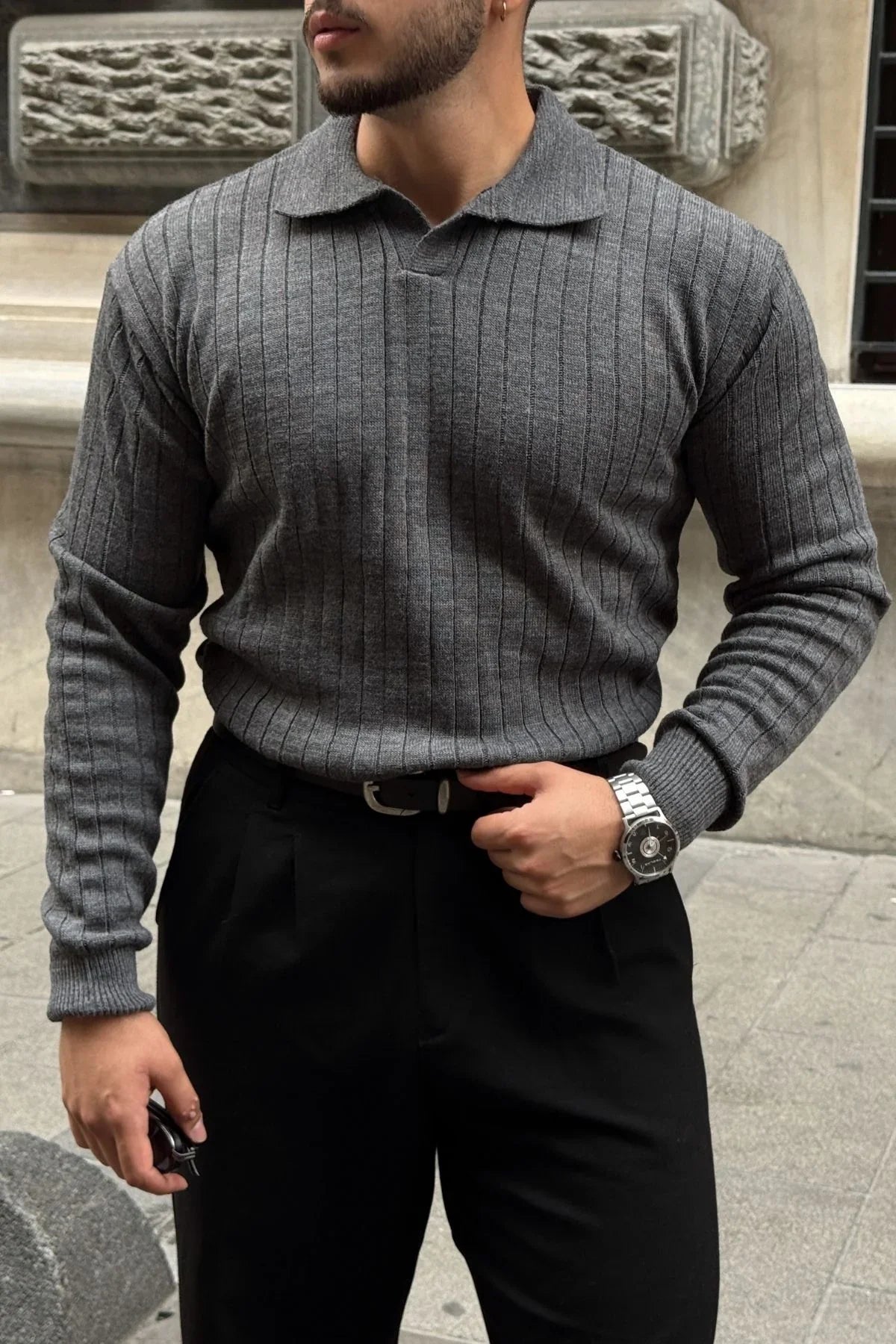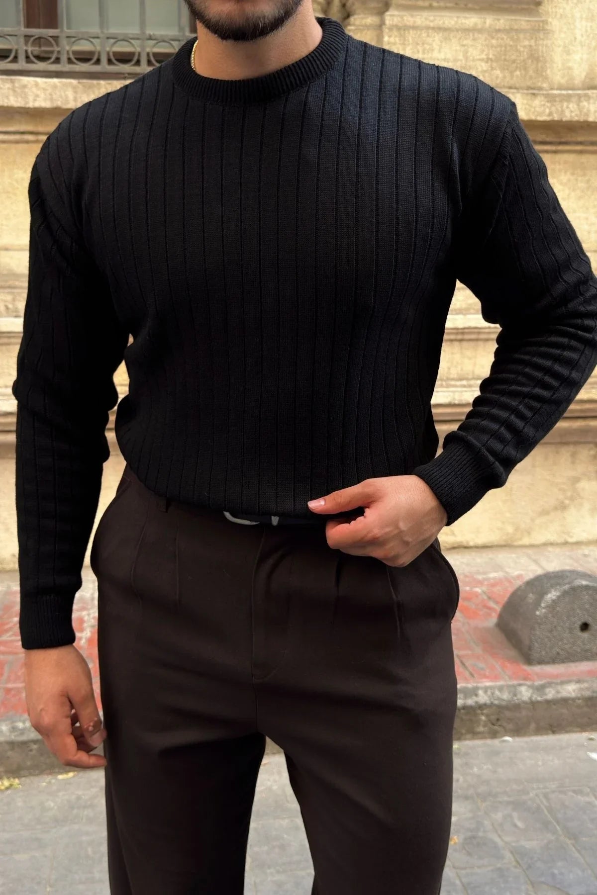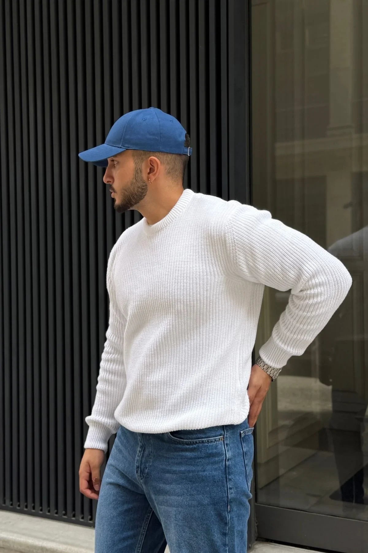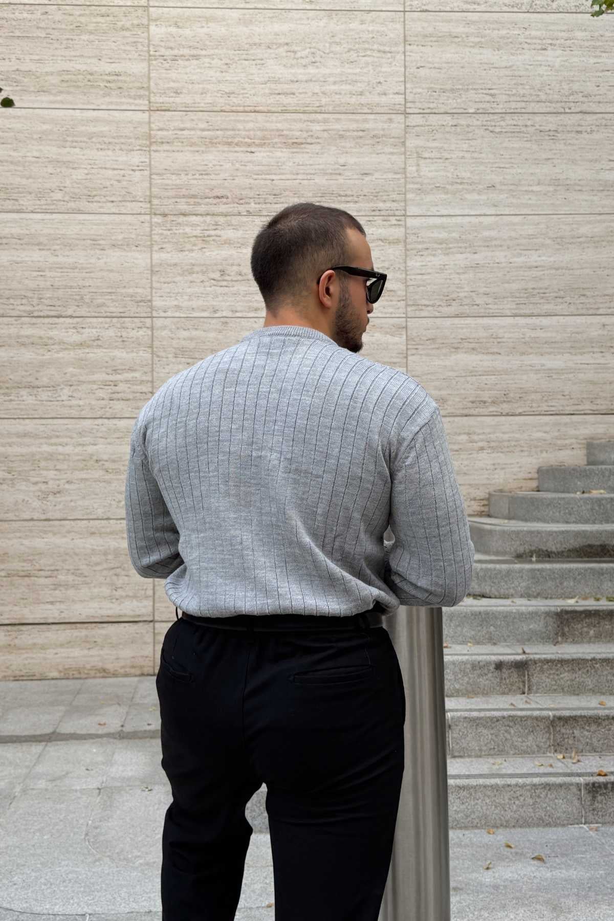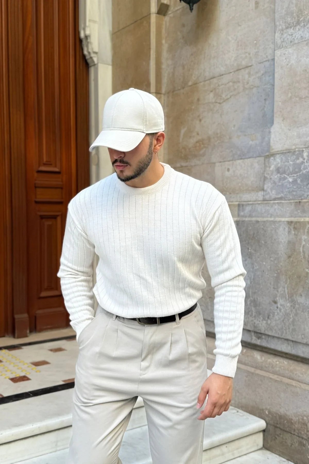 Triko kazaklar, kumaş baggy pantolon ve deri kemerle rahat ve modern bir görünüm yaratır. Kadife uzun kollu gömlek ceketler veya kadife yaka günlük ceketlerimizle farklı stiller oluşturulabilir.