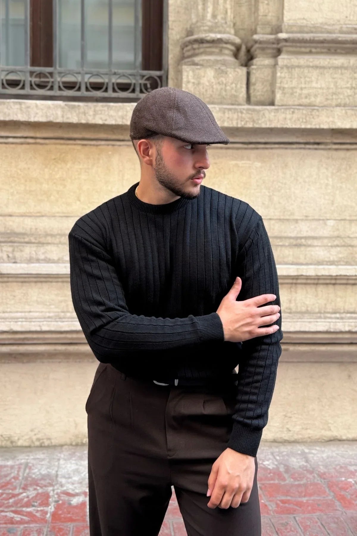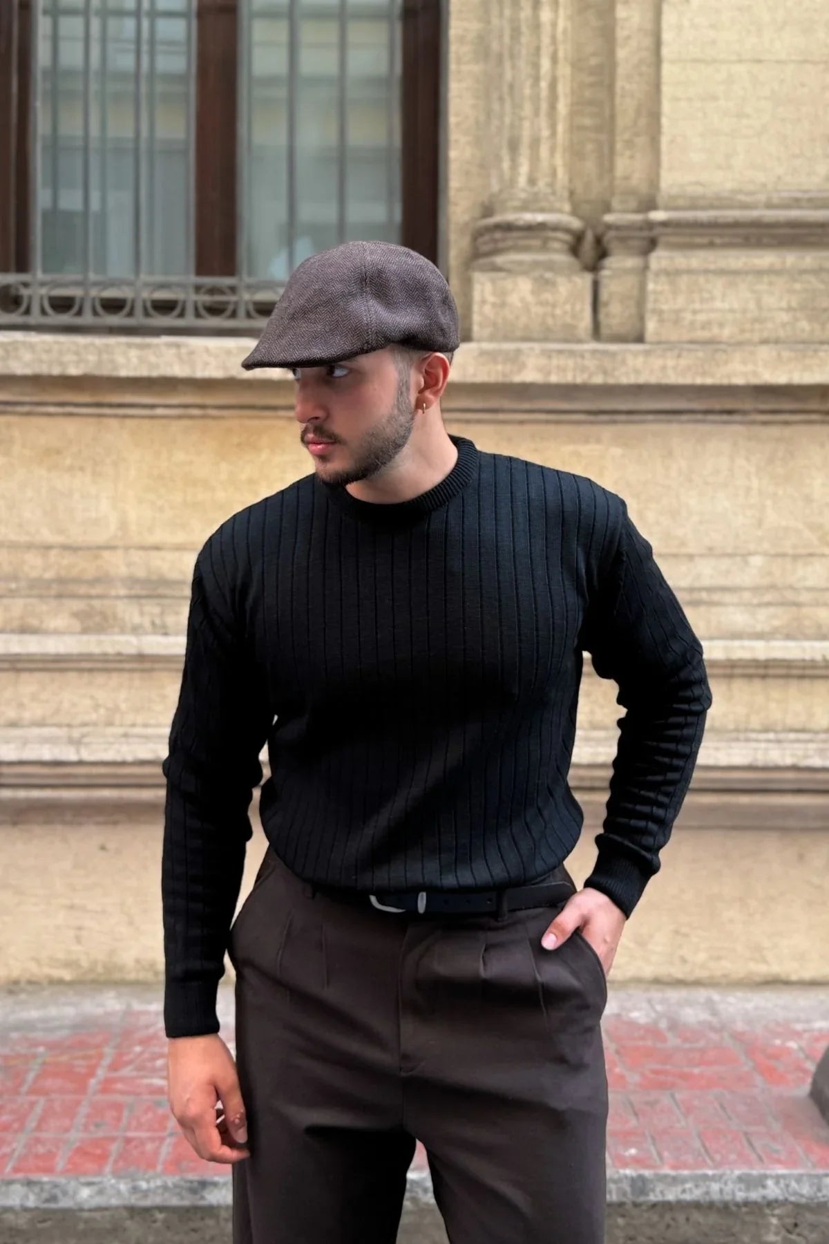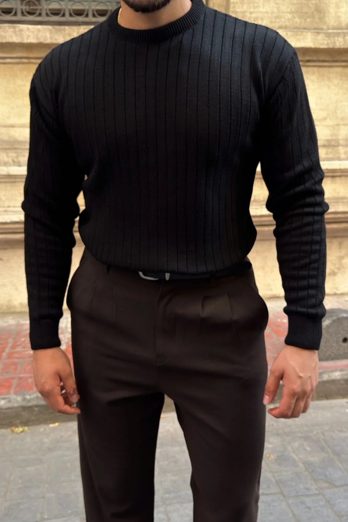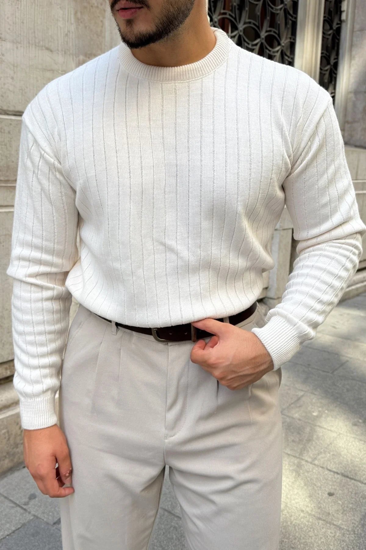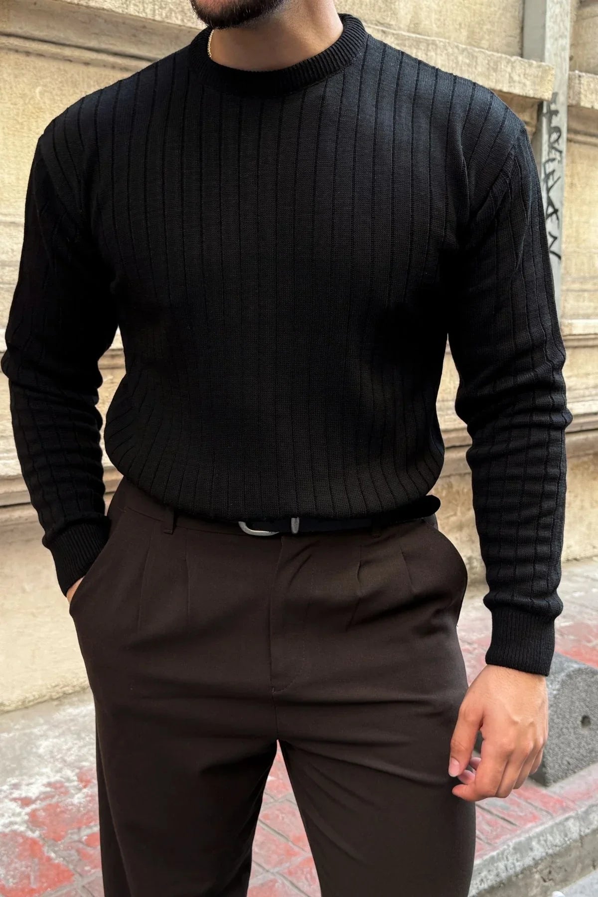 Triko kazaklar, kumaş baggy pantolon ve deri kemerle rahat ve modern bir görünüm yaratır. Kadife uzun kollu gömlek ceketler veya kadife yaka günlük ceketlerimizle farklı stiller oluşturulabilir.