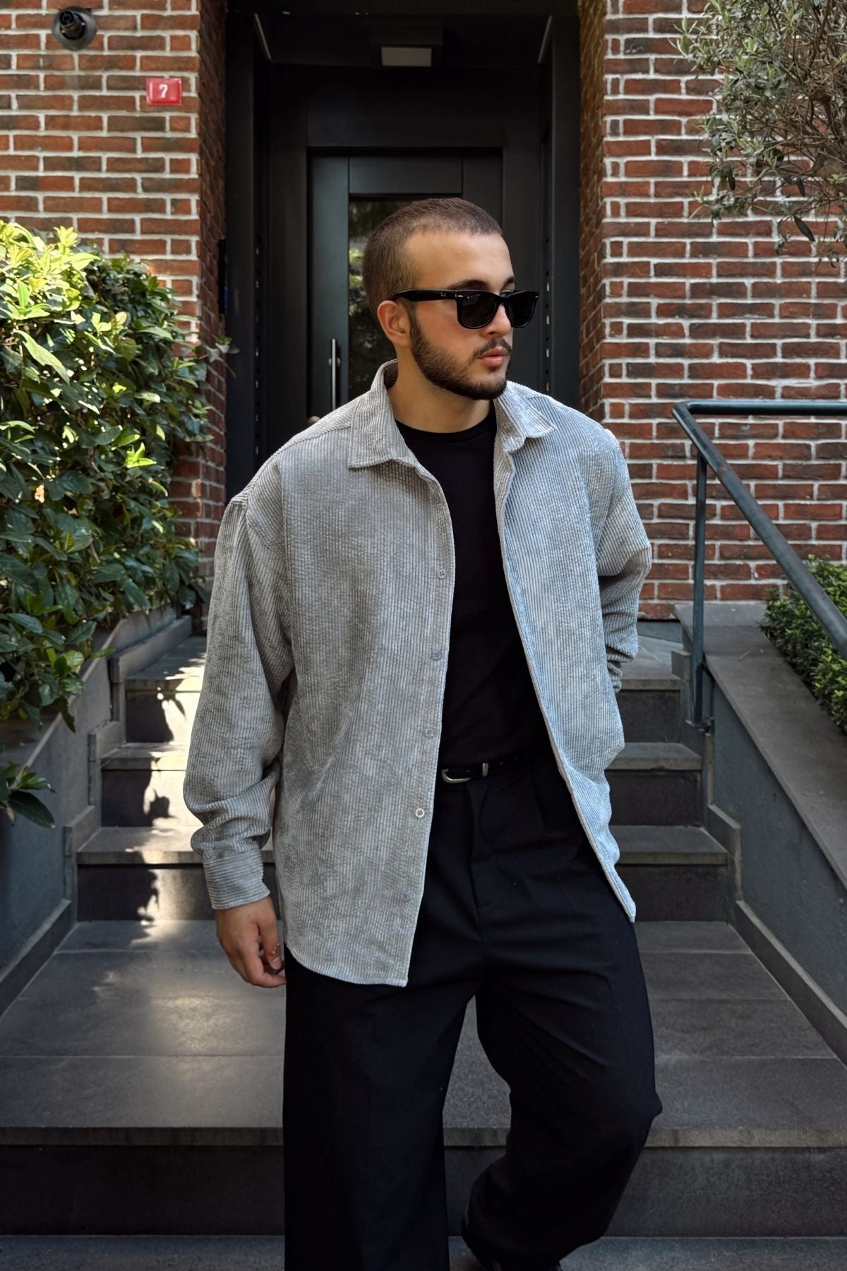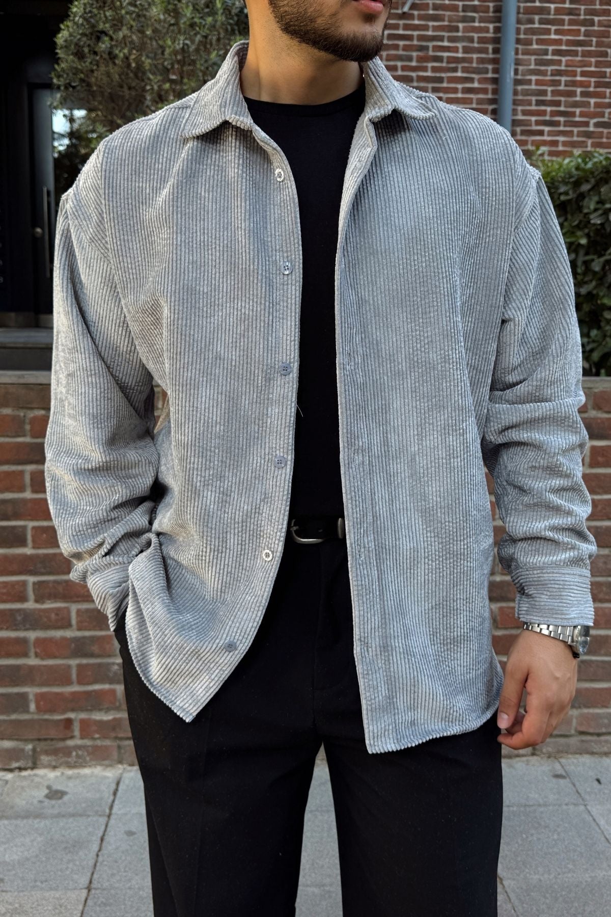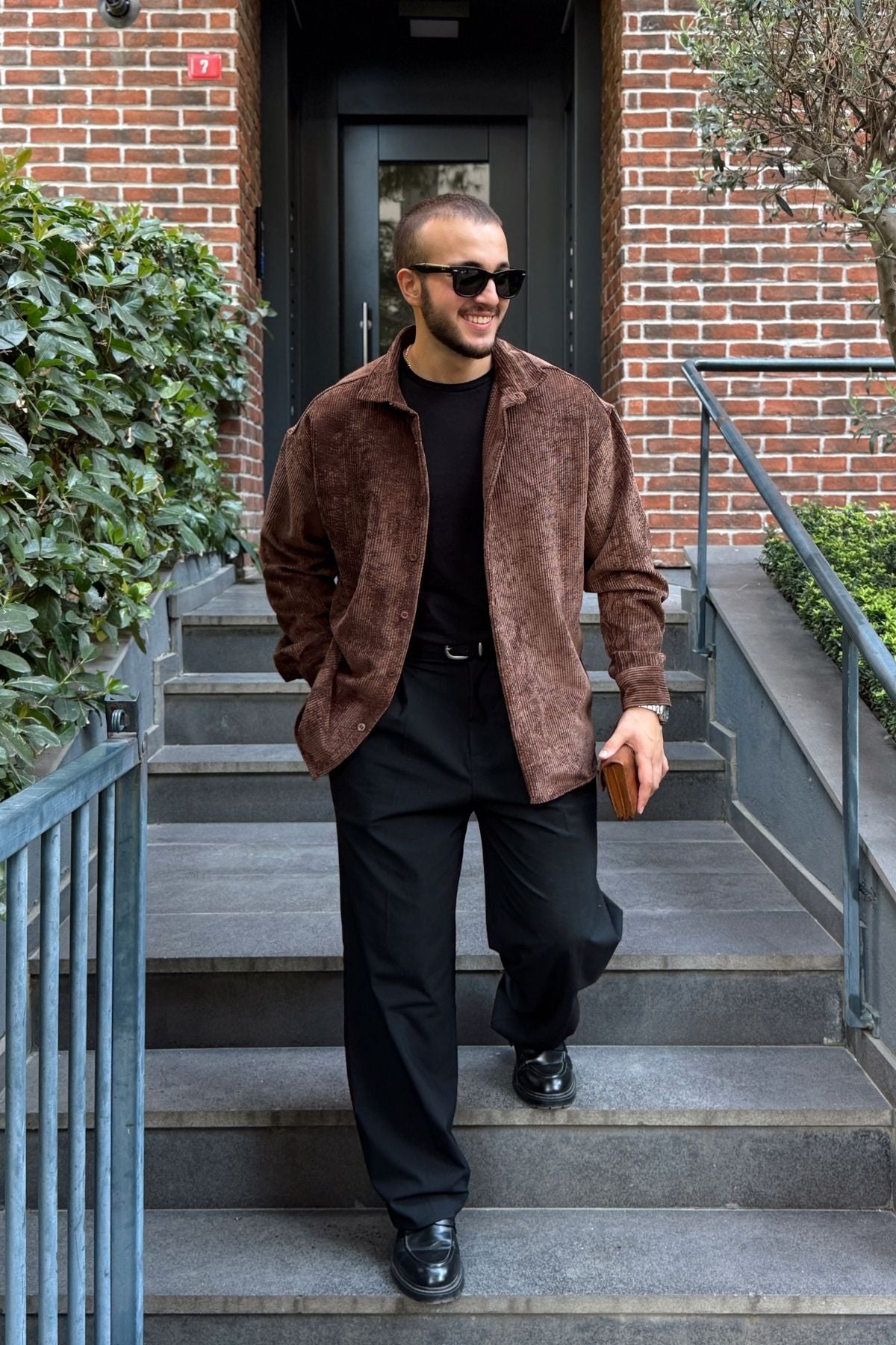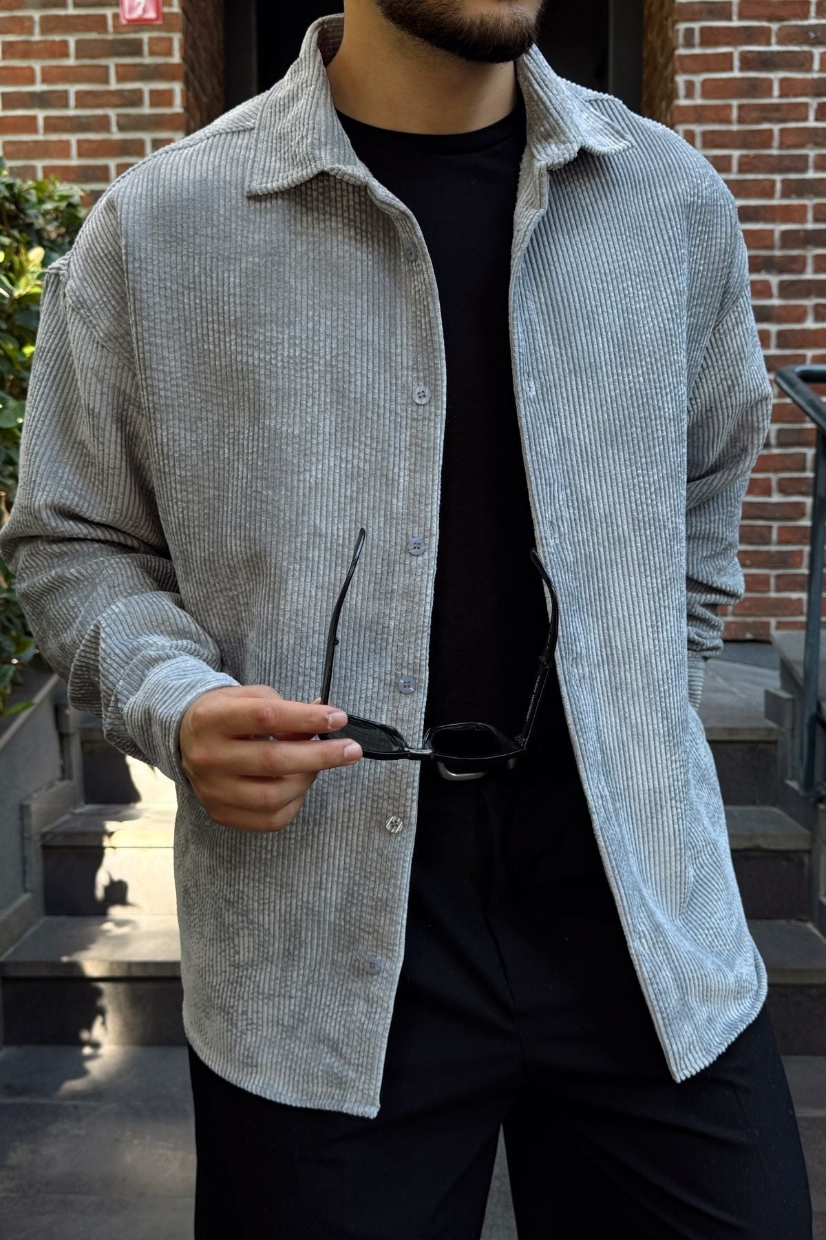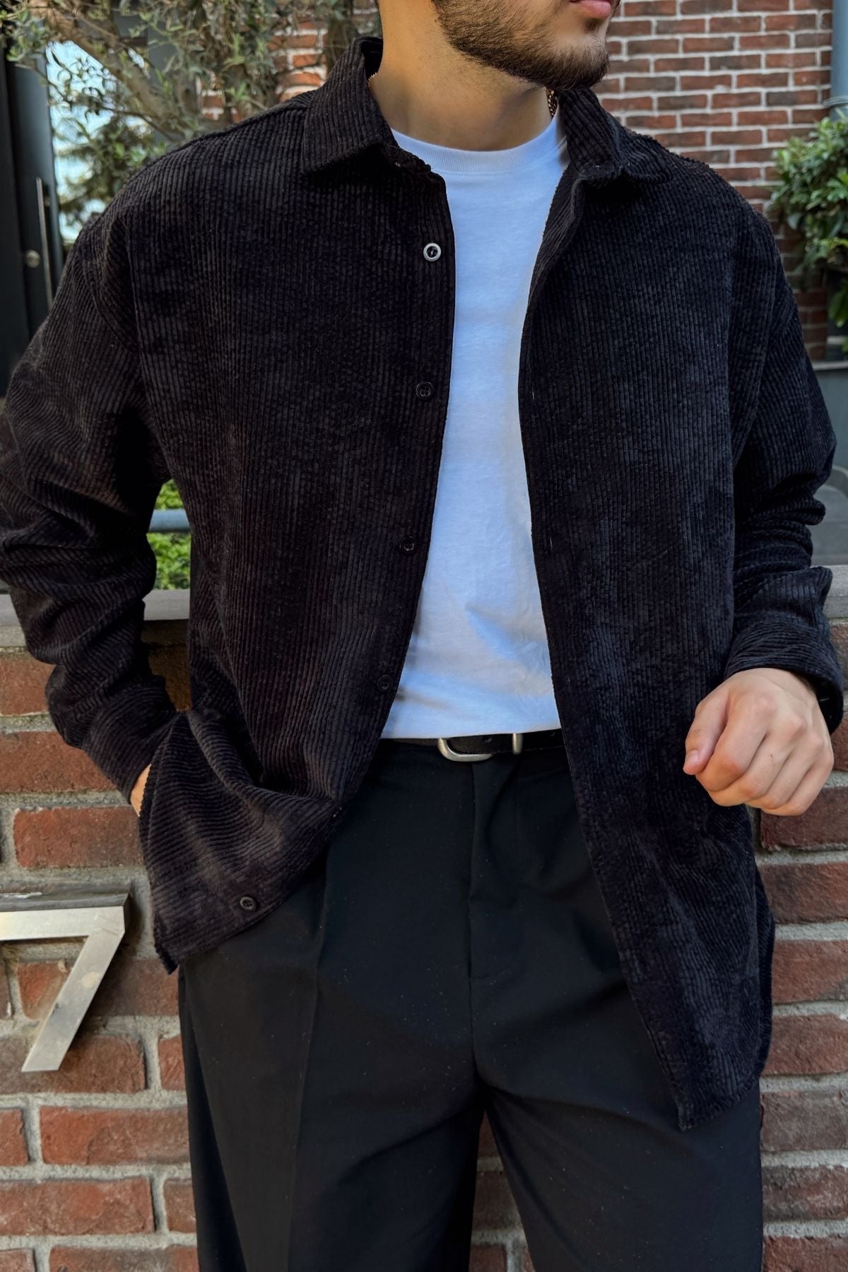 Yotau Erkek Oversize Fit Kadife Uzun Kollu Gömlek Ceket