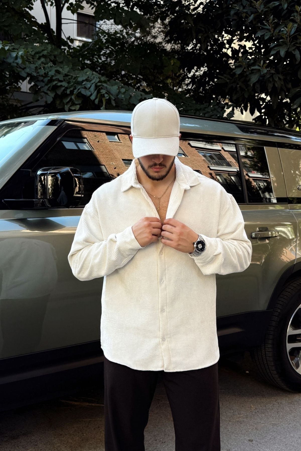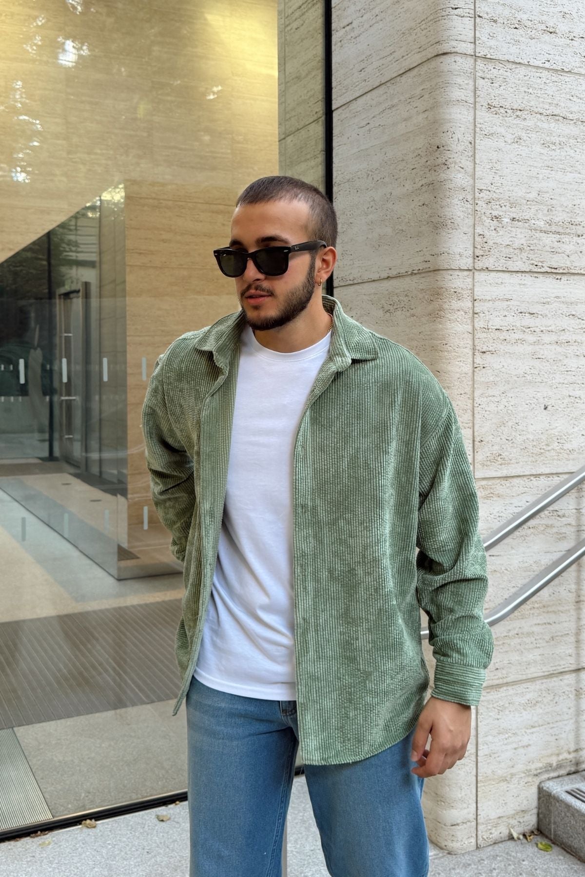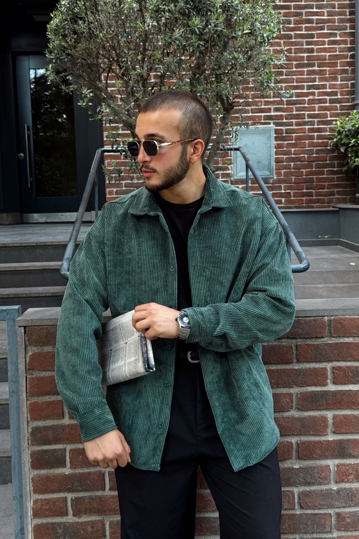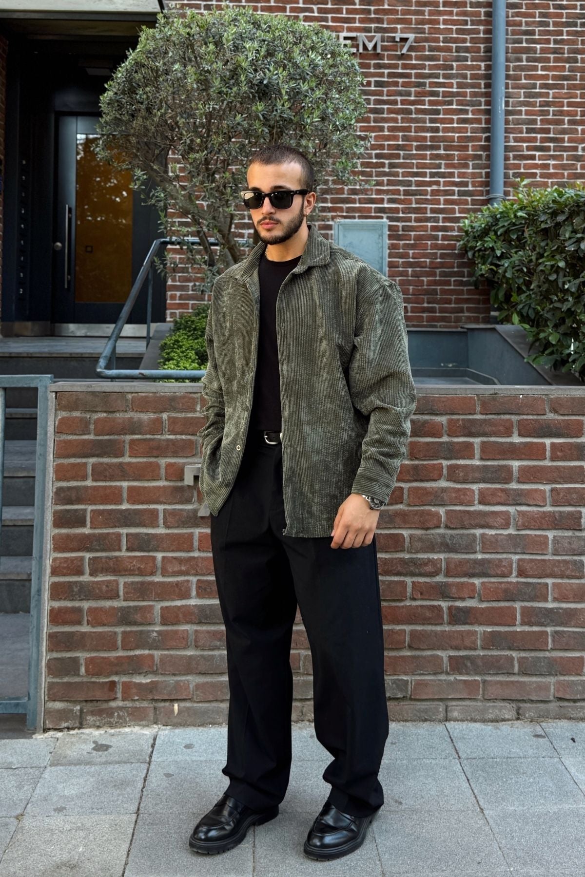 Yotau Erkek Oversize Fit Kadife Uzun Kollu Gömlek Ceket