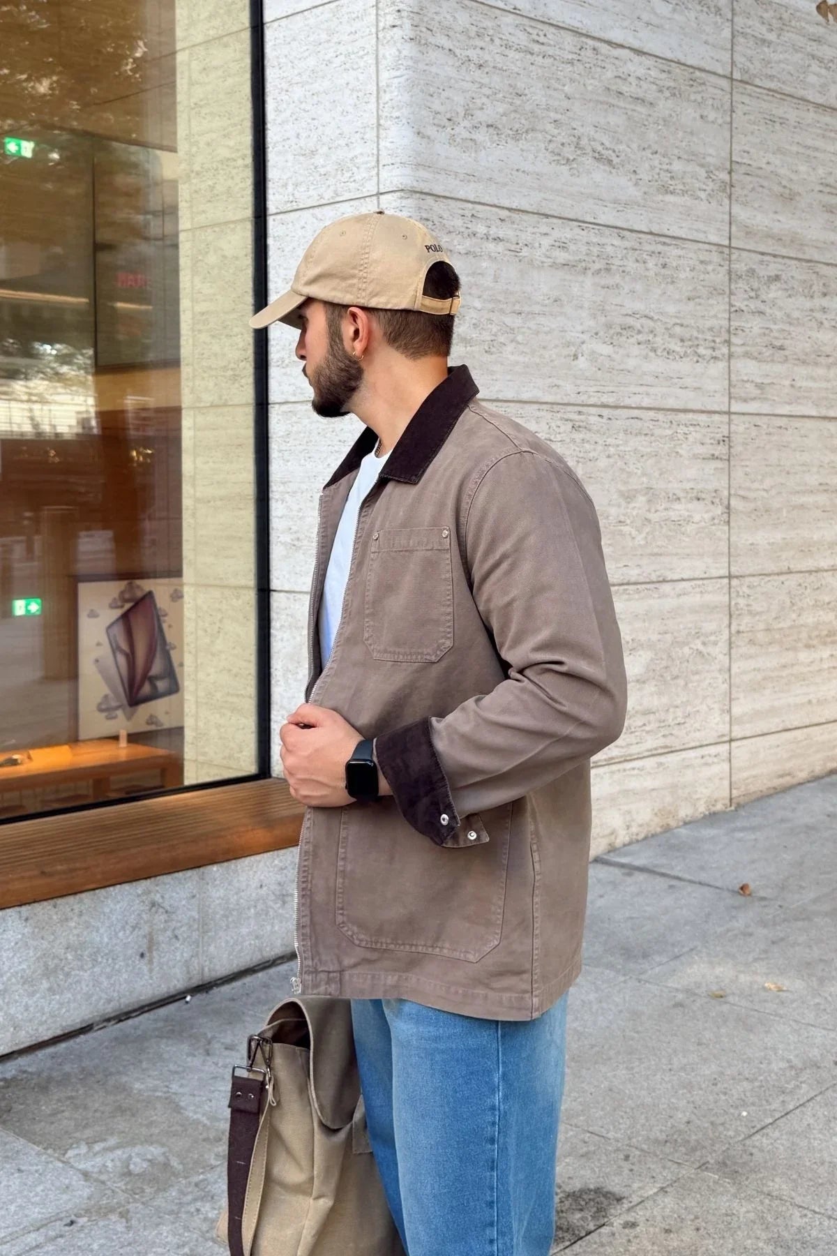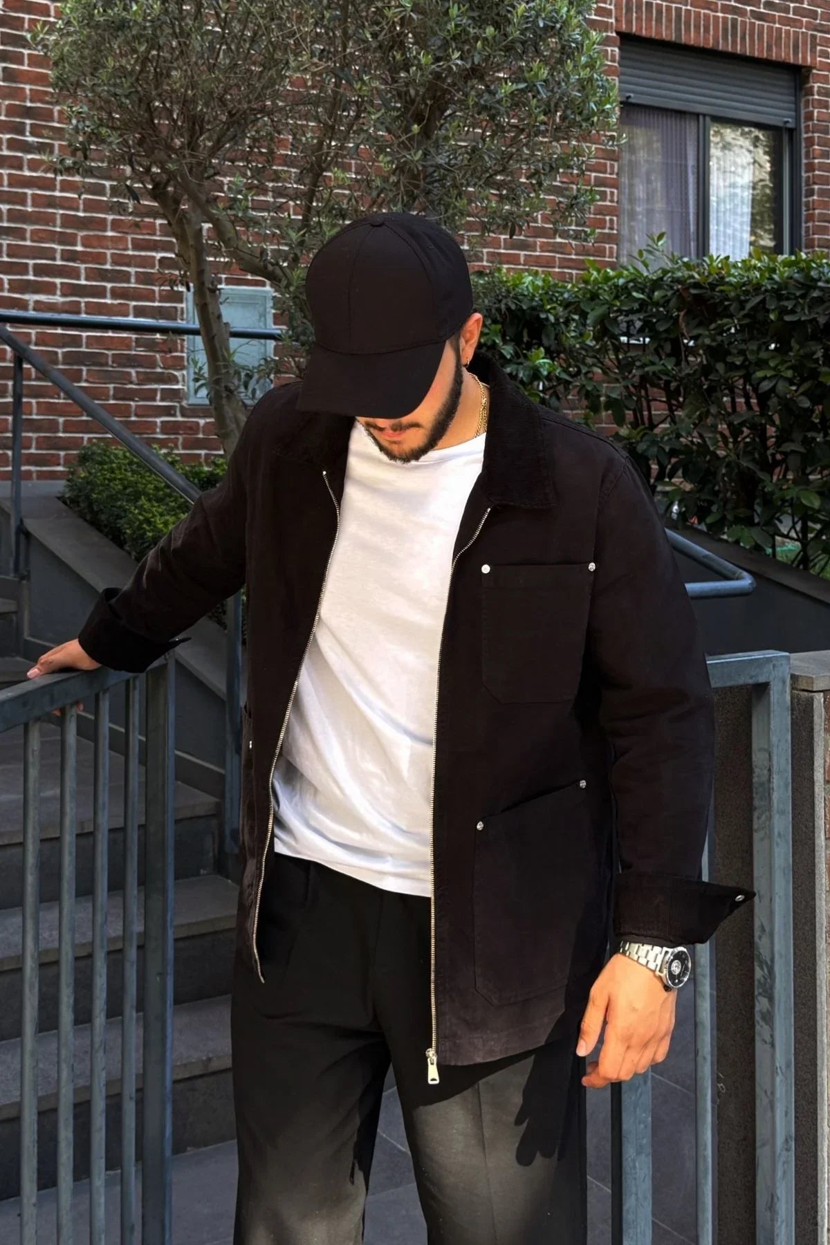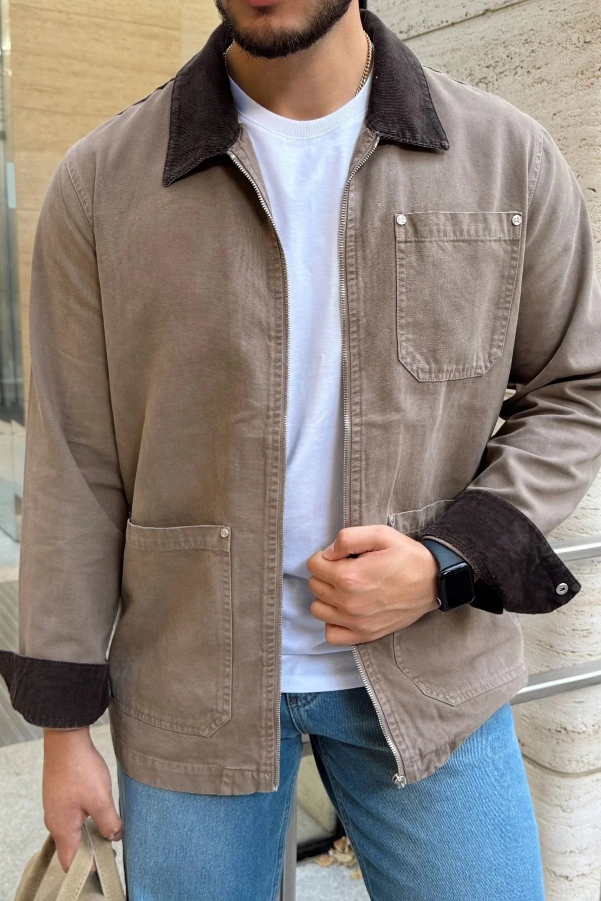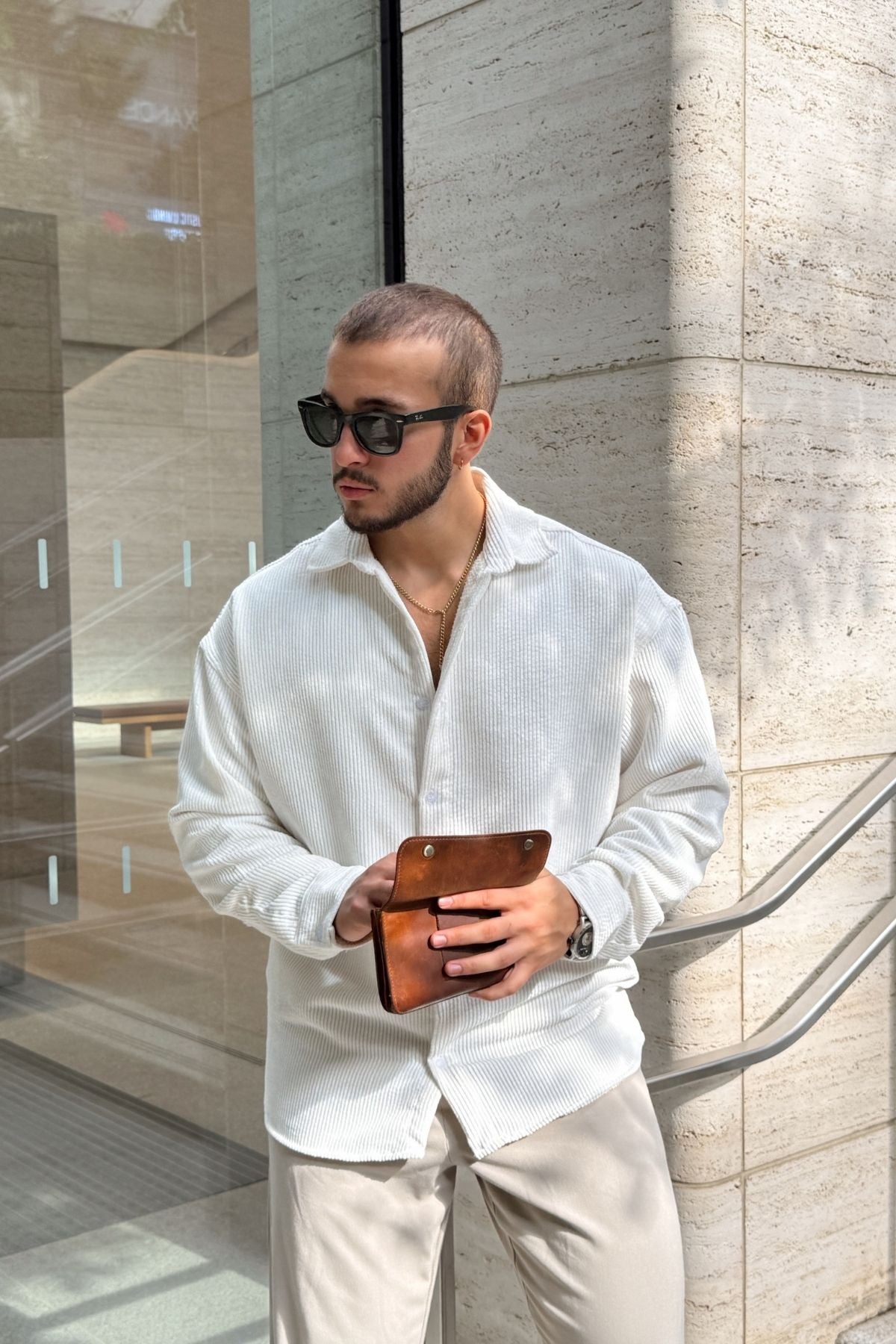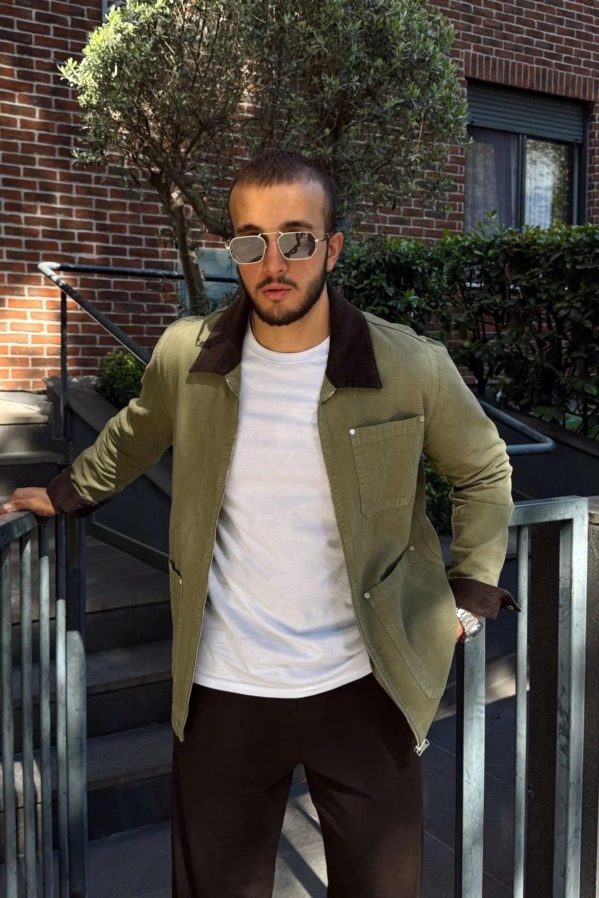 Yotau Erkek Oversize Fit Kadife Uzun Kollu Gömlek Ceket