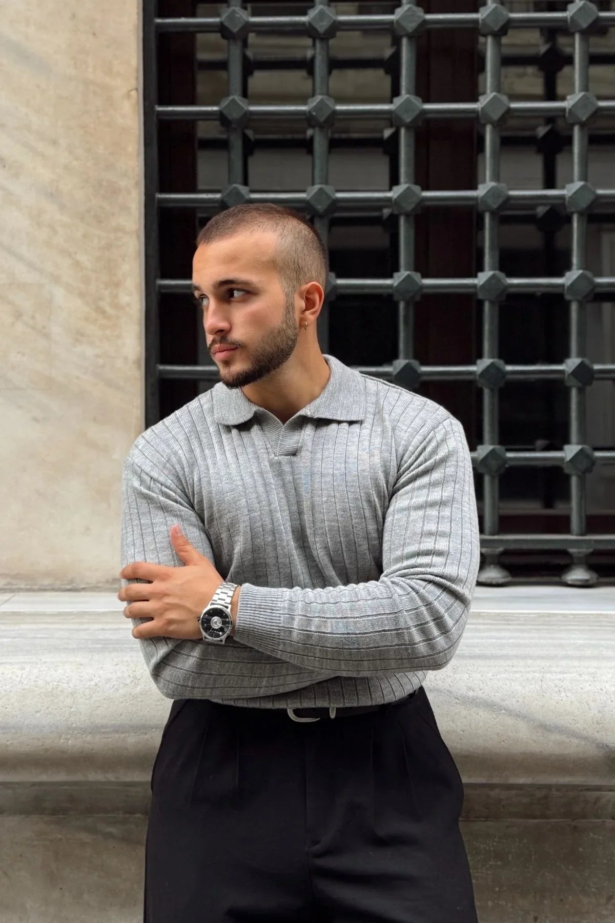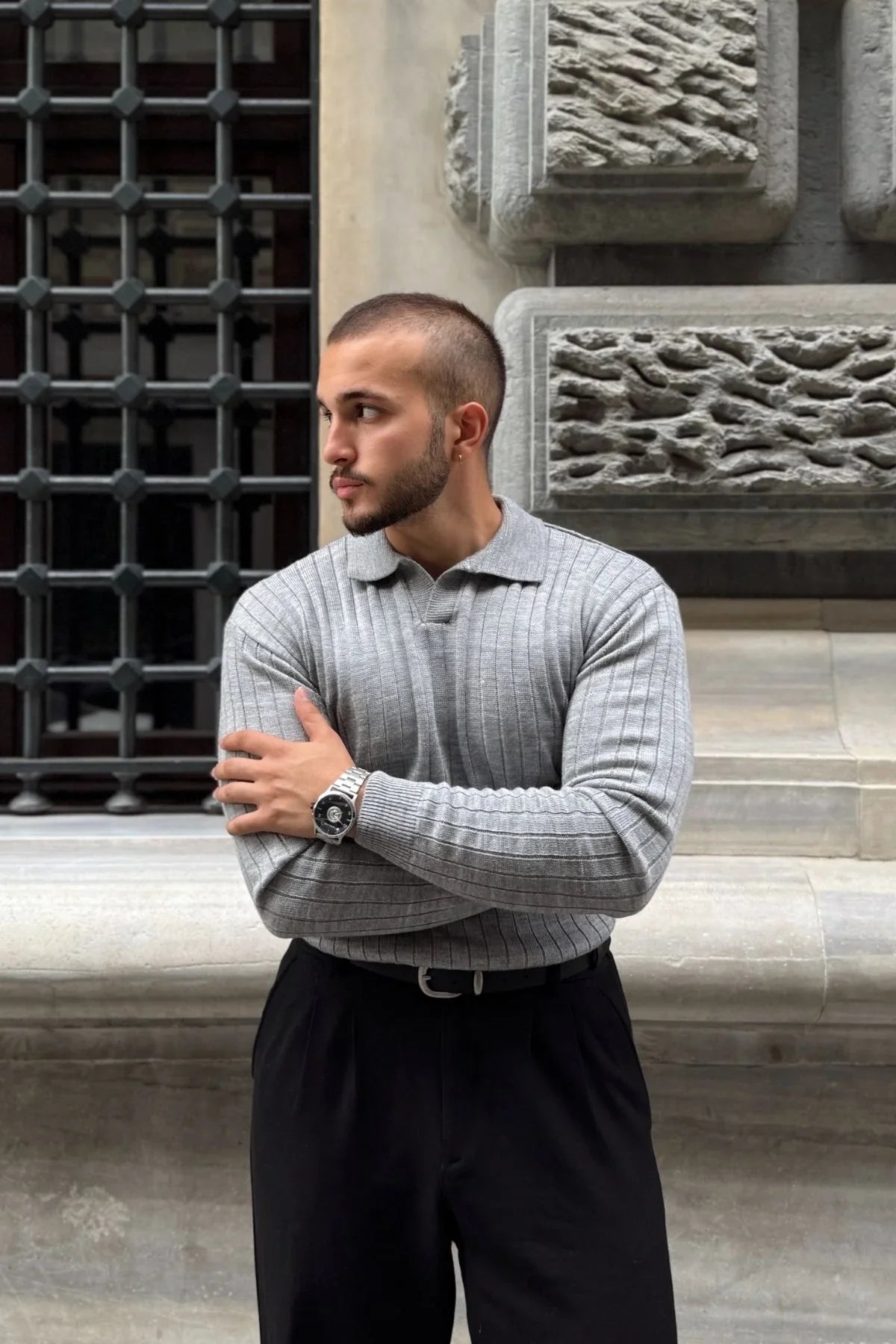 Polo yaka uzun kollu tişört, kumaş baggy pantolon veya dökümlü uzun kollu sweatshirt ile kombinlenebilir. Renk skalası sade ve nötr olduğundan, hemen her dış giyimle uyumludur.