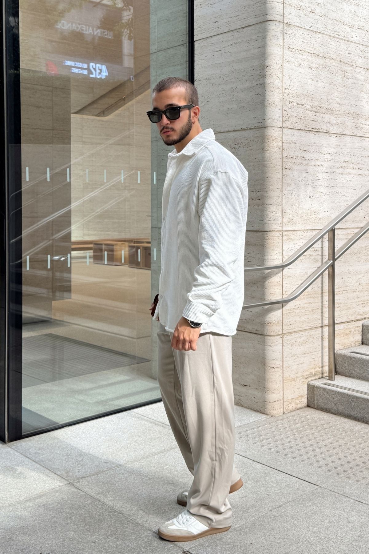 Basic gömlekler klasik şıklık için idealdir. Jogger veya Baggy pantolonlarla birlikte sade ve klasik bir sonbahar stili oluşturur. Gömlek kolu kıvrılarak daha rahat bir hava verilebilir.