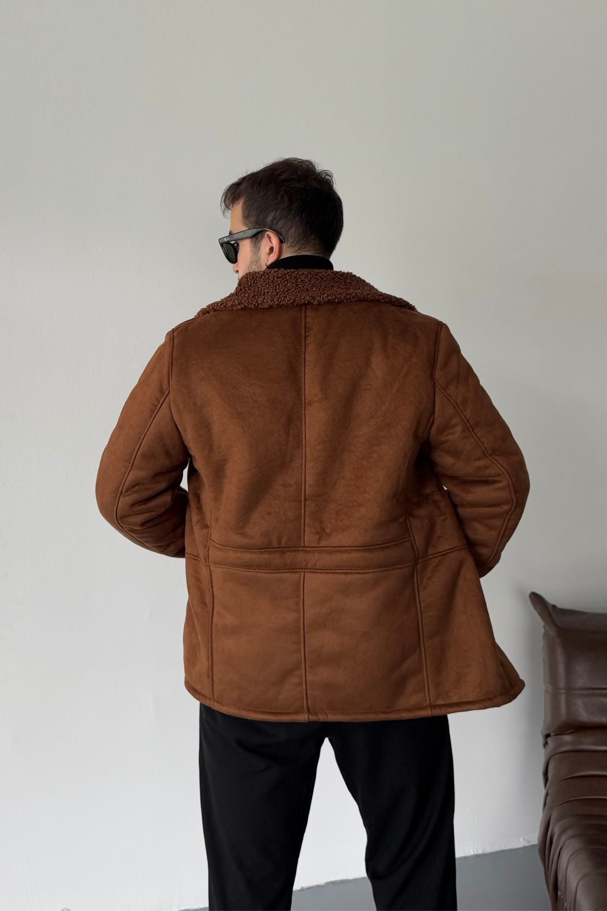 Erkek Regular Fit Içi Kürklü Düğmeli Katlı Yaka Yandan Cepli Klasik Süet Mont