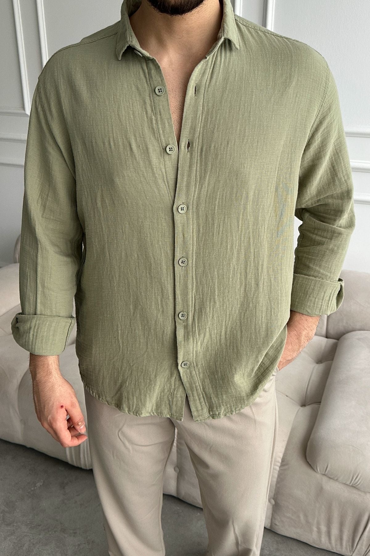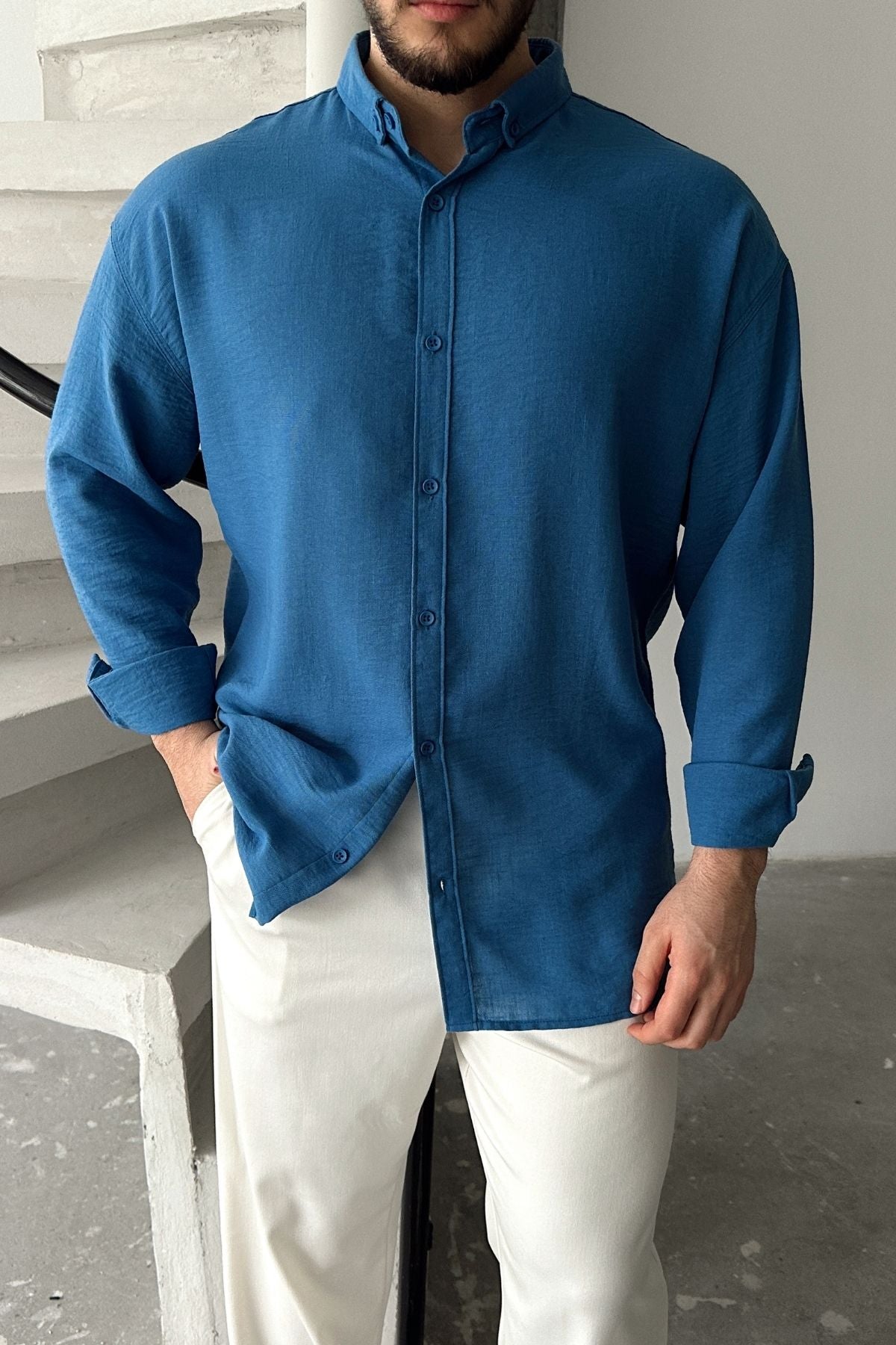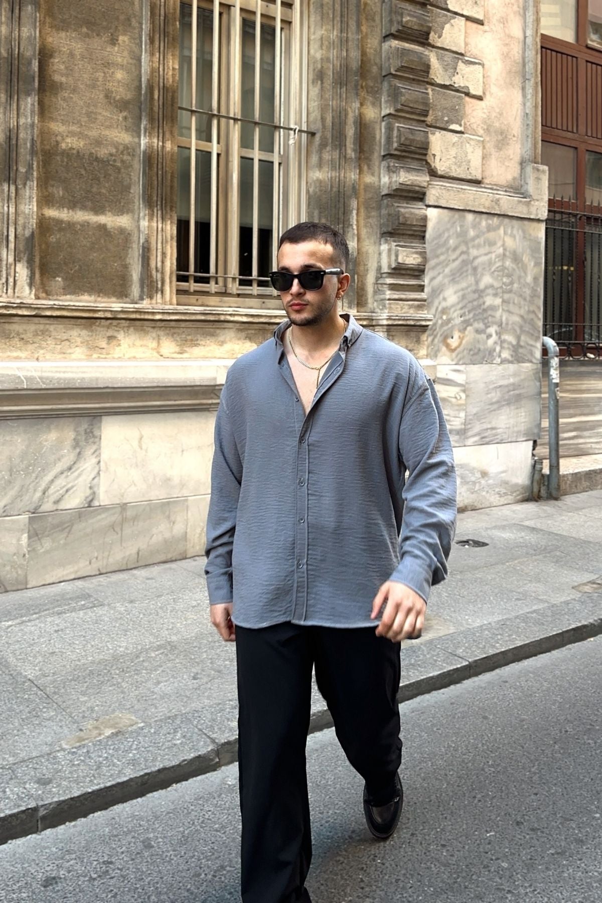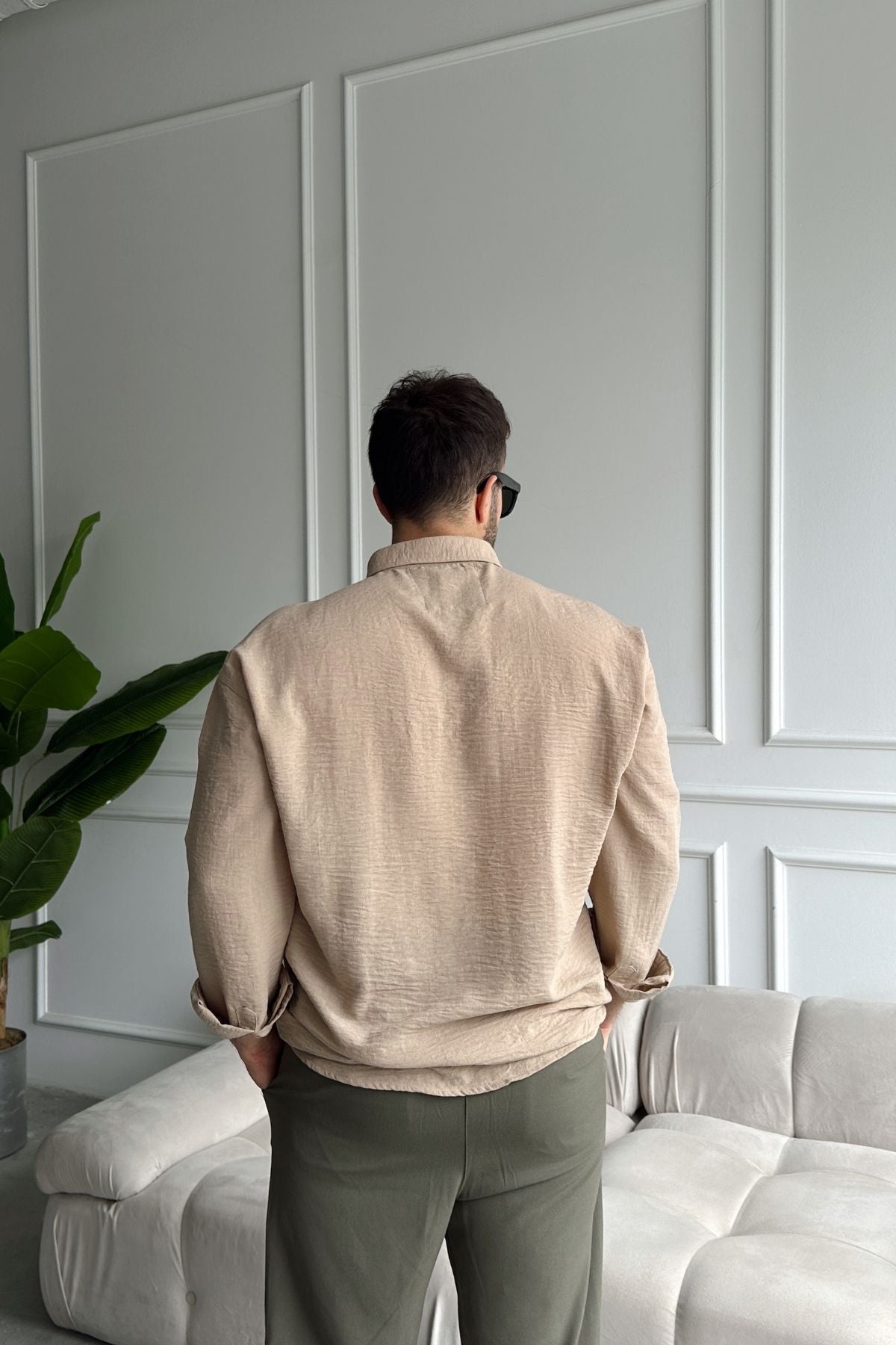 Napas Erkek Oversize Keten Görünümlü Gömlek