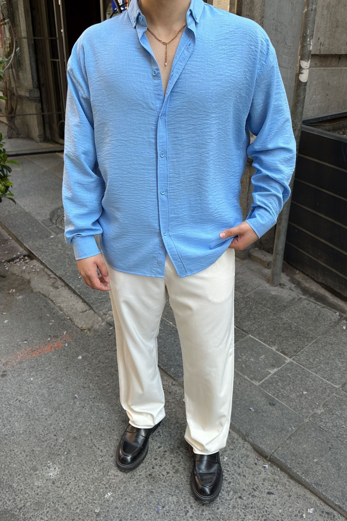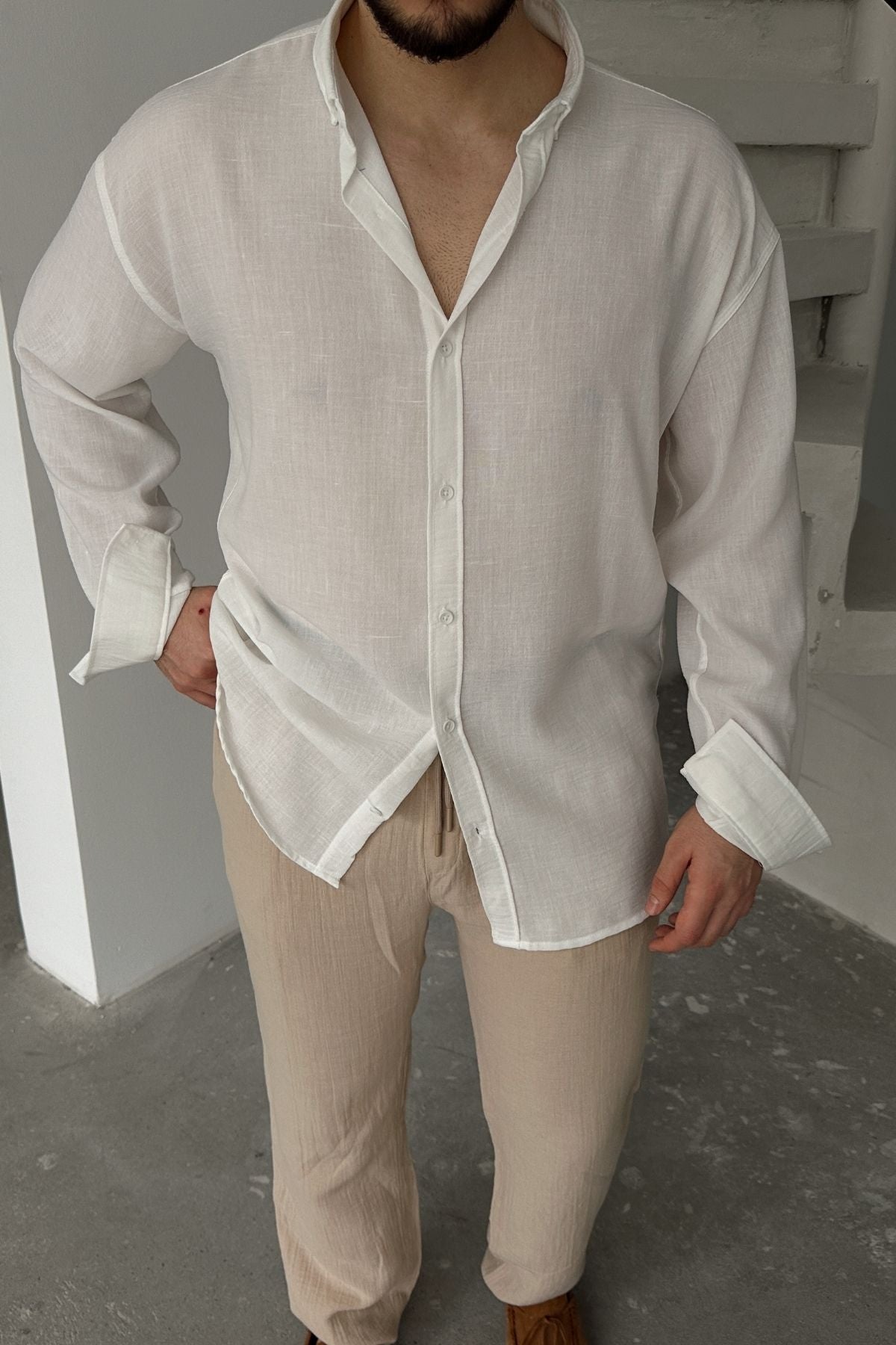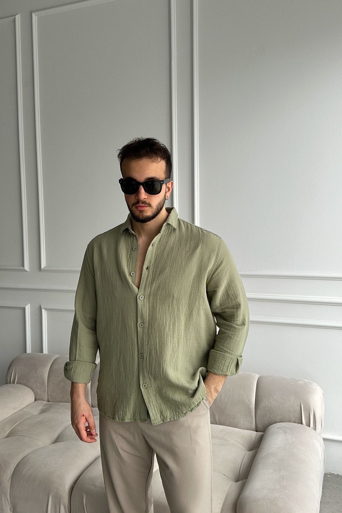 Napas Erkek Oversize Keten Görünümlü Gömlek
