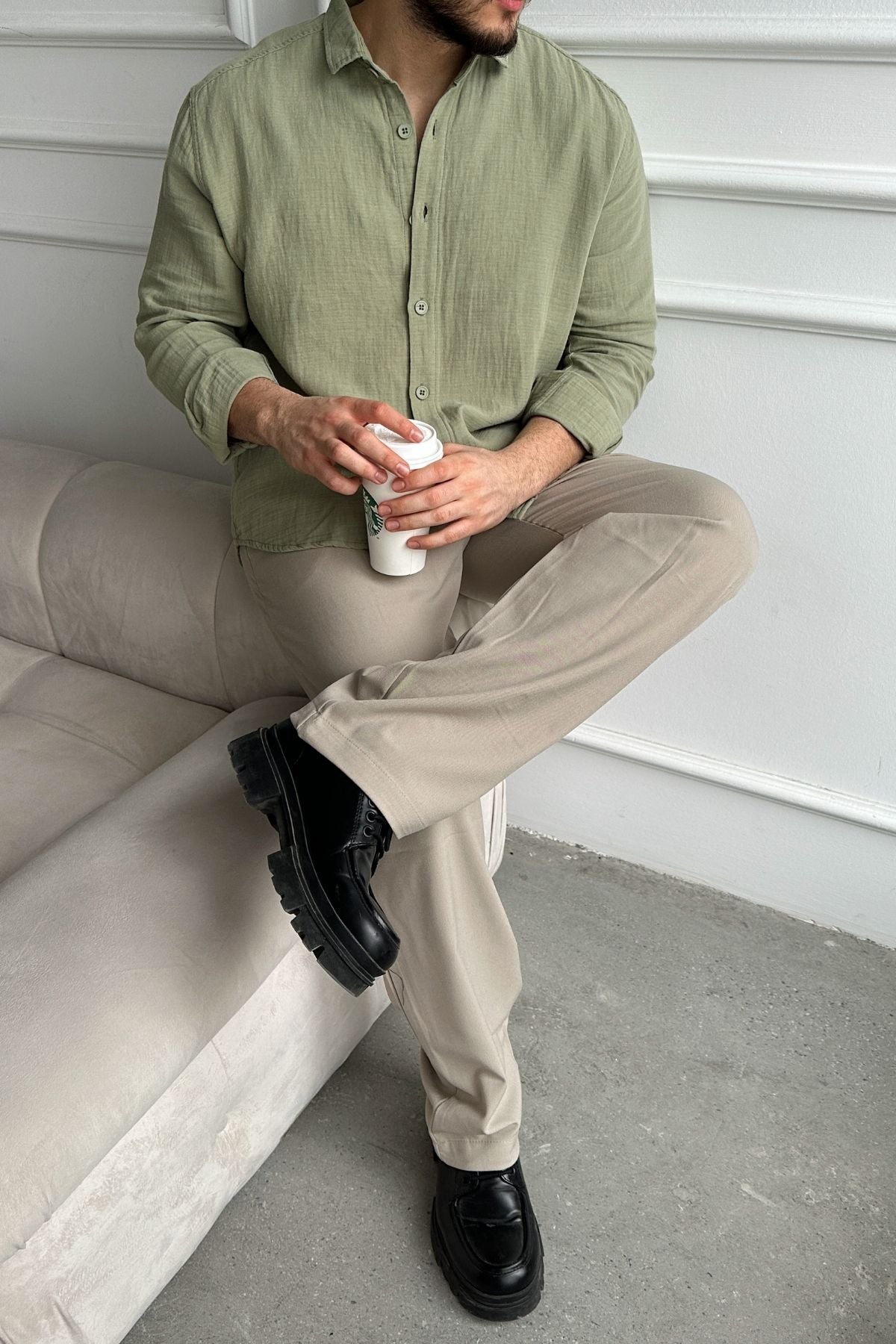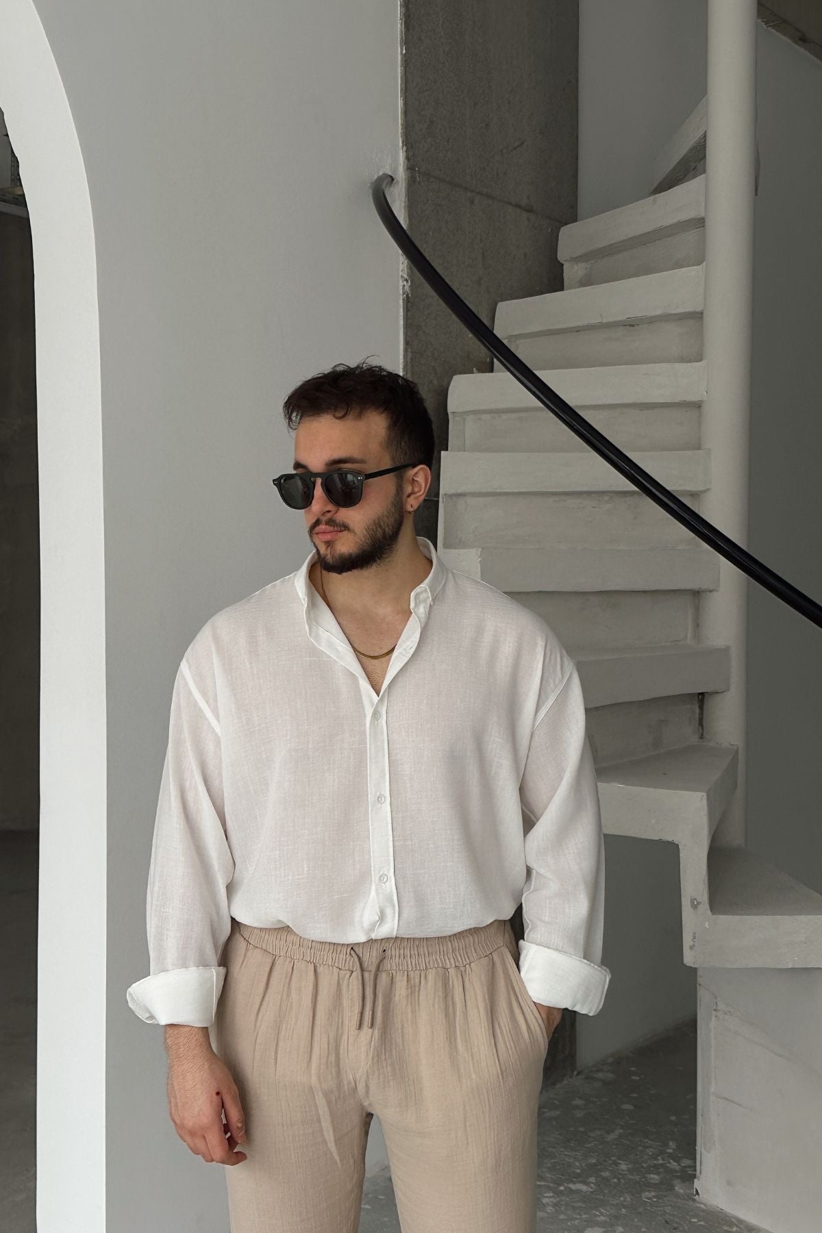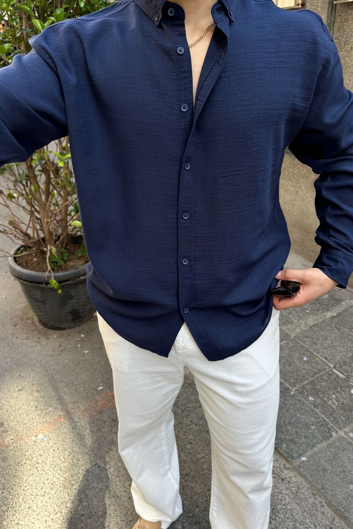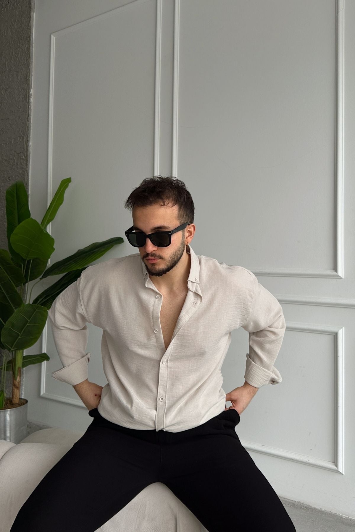 Napas Erkek Oversize Keten Görünümlü Gömlek